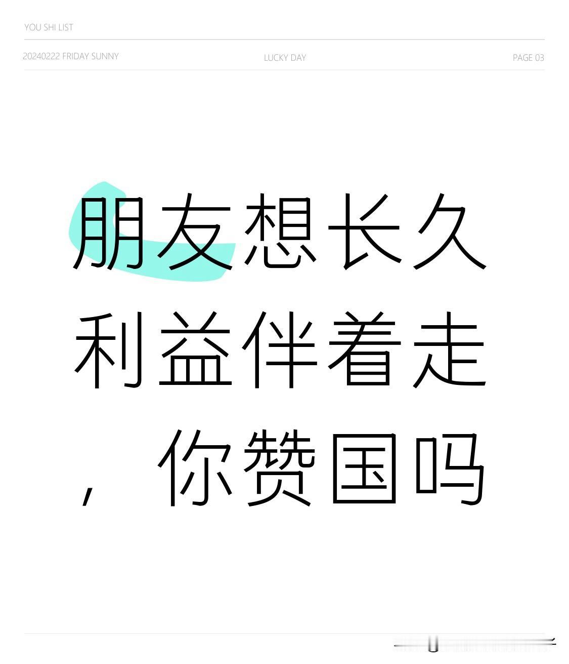 “朋友想长久,利益伴着走”,我觉得有一定道理。 生活中,常能看到因利益散伙的朋友。之前我有个朋友,给另一个人牵线搭桥业务,忙前忙后,请客吃饭也没少花心思。可业务没谈成,那人立马就疏远了。这说明很多人交朋友,背后都有利害考量。 美国作家马克·吐温说“关系都是假象,利益才是真相”,稻盛和夫也说和人走太近是灾难。当然不是说朋友间只有利益,只是适当掺杂利益,或许能让关系更现实稳固。毕竟人都有私心,在利益面前,友情有时会很脆弱。