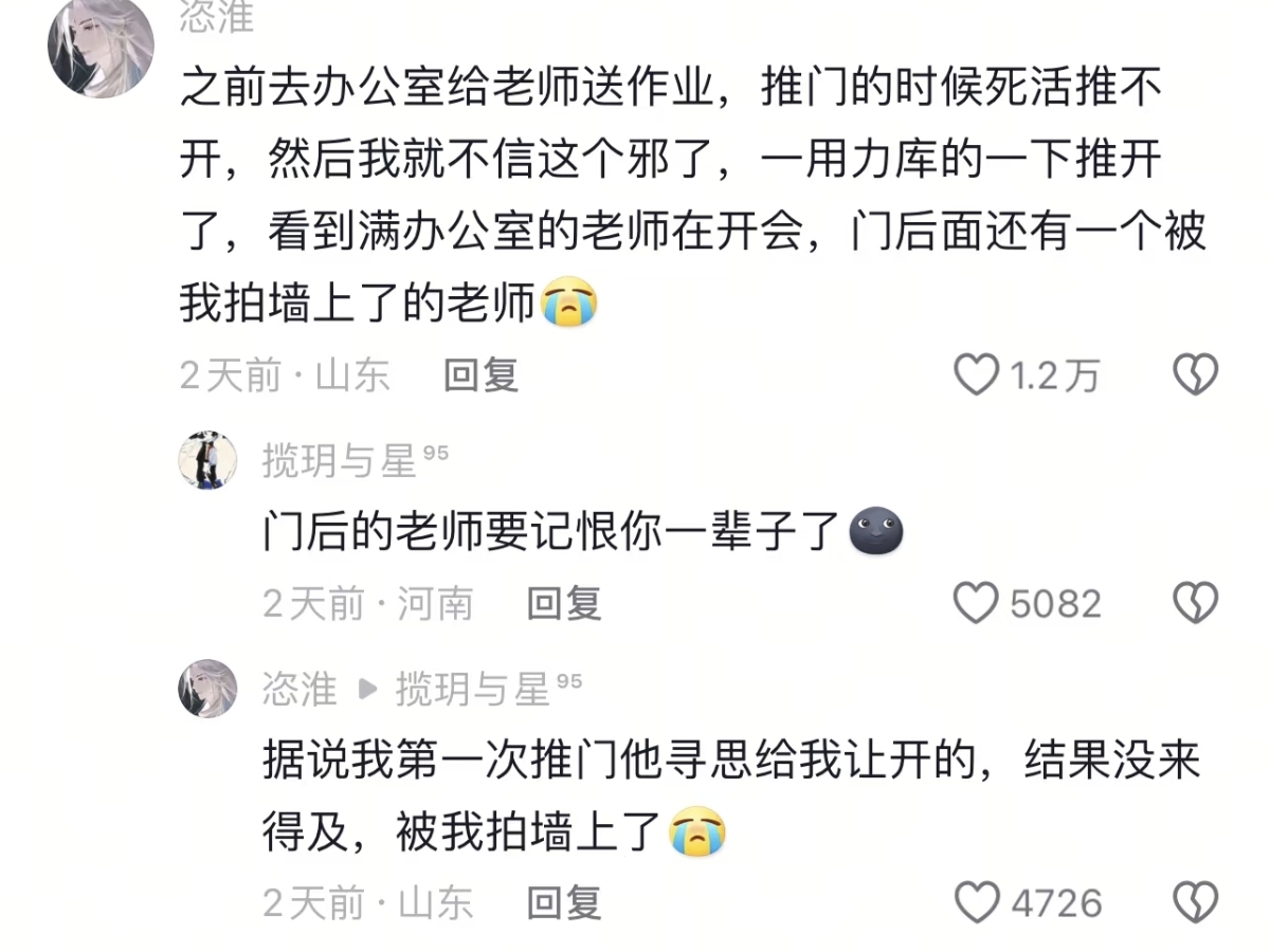 据说我第一次推门他寻思给我开的,结果没来得及,被我拍墙上了