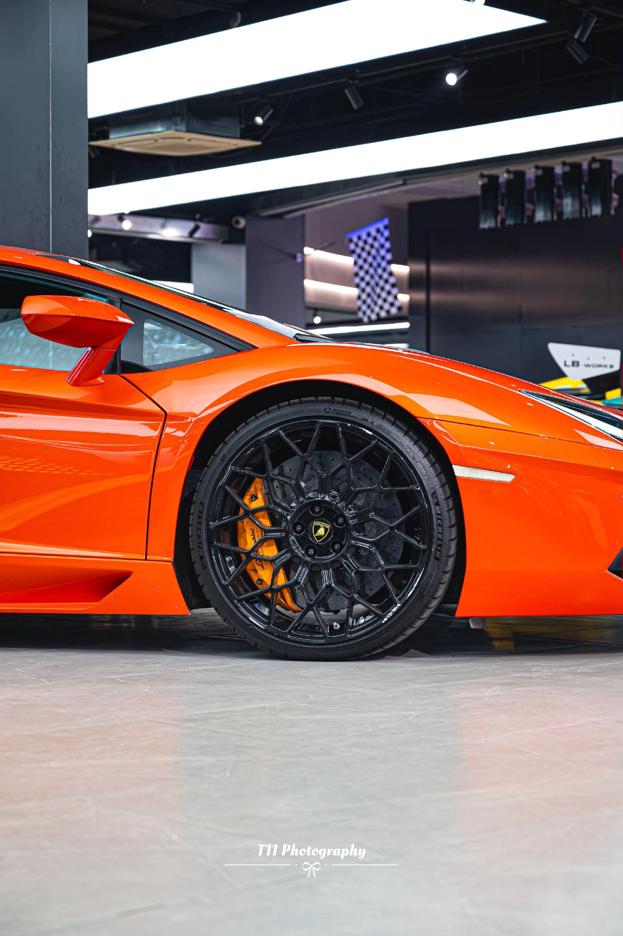 虽然老大牛发布已超过十年,但依然不过时!Lamborghini Aventador LP700-4 Arancio Argos配色,如果是原装轮毂,那一定会更美!