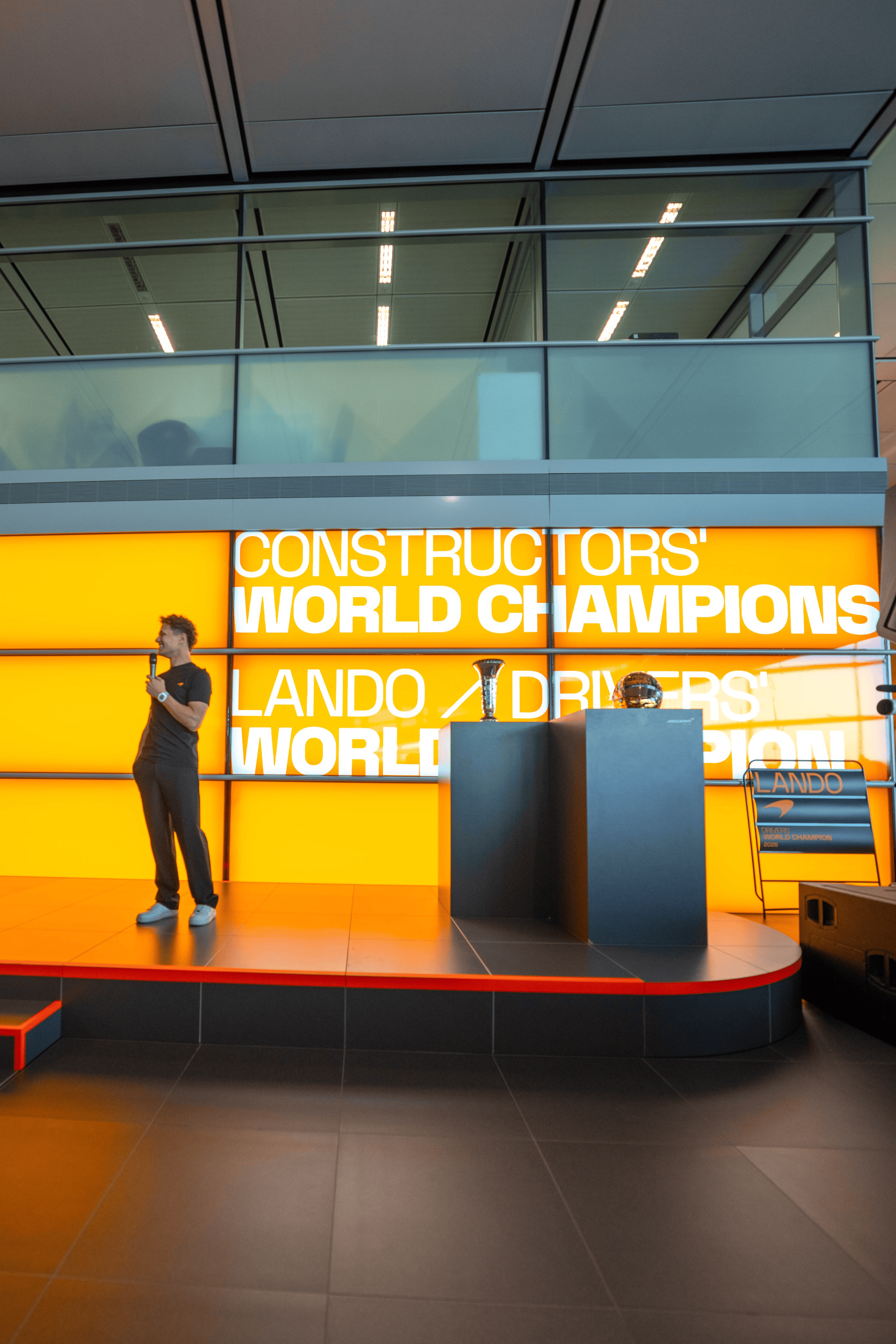 在讲话中,诺里斯表示:“作为车手世界冠军站在这里,感觉难以置信。这是我很久以前的梦想,那时我看着电视,幻想着有一天自己也能身处其中,却完全不知道这需要付出什么,也不知道这对每个人意味着什么,而不仅仅是对我自己。”
