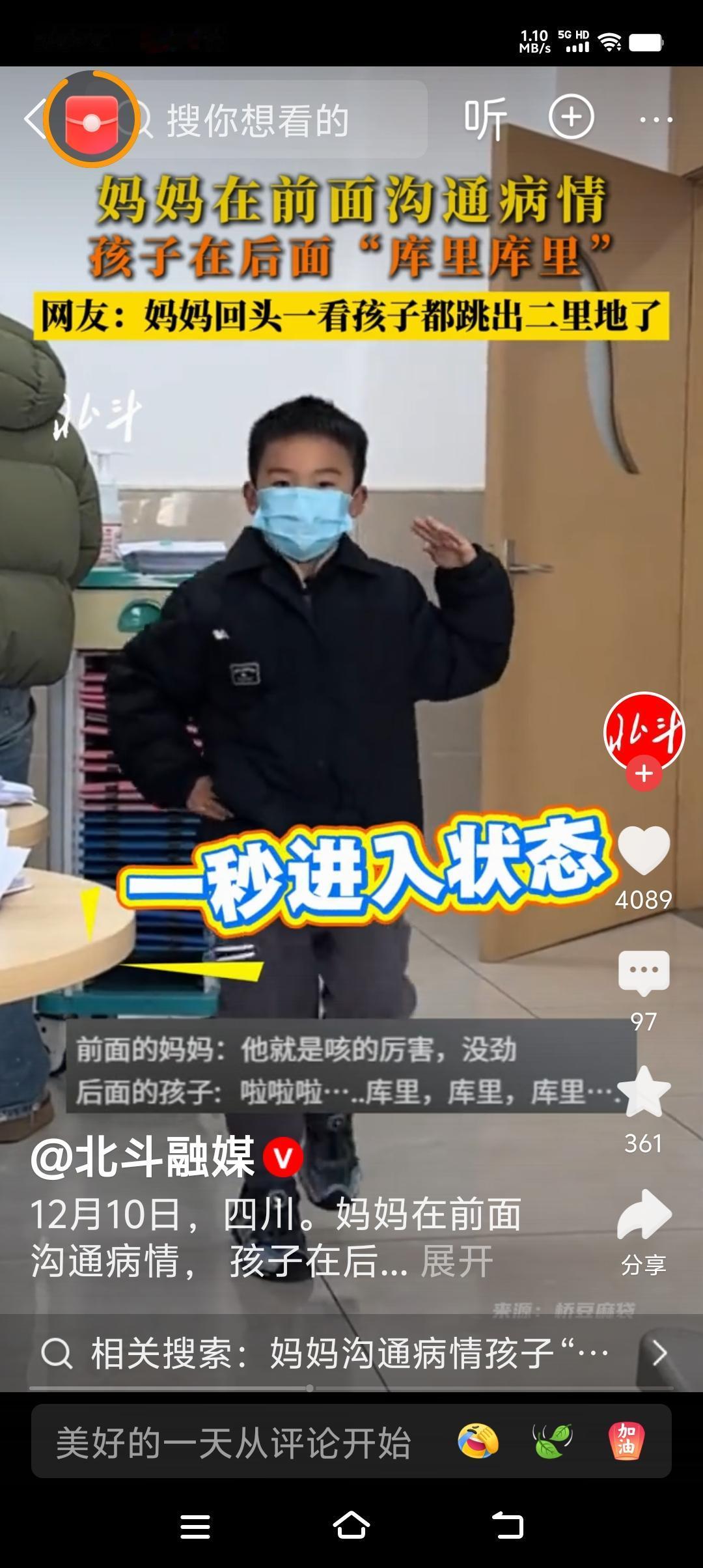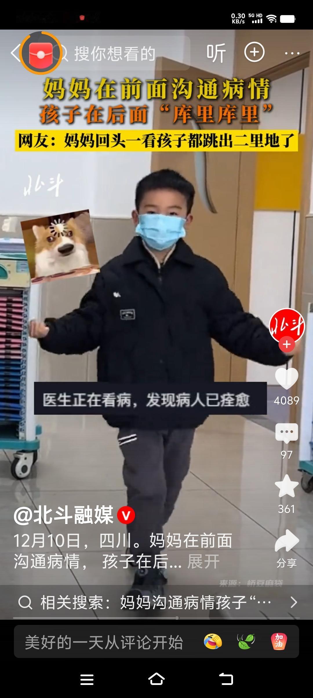 孩子的世界太纯粹了,快乐永远不会缺席! 因为妈妈在医院里医生整个沟通孩子的病情, 妈妈满是担忧与凝重, 可是回过头来看到儿子,妈妈 不得不收起忧虑的神情露出笑容! 原来带着口罩的儿子已经与另一位阿姨互动起来,库里库里,跳得好开心,还别说小男孩跳得有模有样! 孩子的快乐是不会被环境影响的此时的他早已经把不舒服抛到九霄云外! 所以大人在教育孩子的时候不能用成人的思维强加给孩子,孩子的天性使然,遇到特别调皮的孩子还是要正确引导,不然哪怕把你气到发疯也是无济于事只能是事与愿违! 作为成人之所以不快乐,就是少了童心,多了忧虑! 虽说我们不能像孩子那样每天无忧无虑,但是也不必焦虑太多,如果一个人思虑太多就失去了生活的乐趣!愿我们多些孩子般的童心,少些患得患失的焦虑,随着岁月的沉淀多些孩子气不也挺好吗!