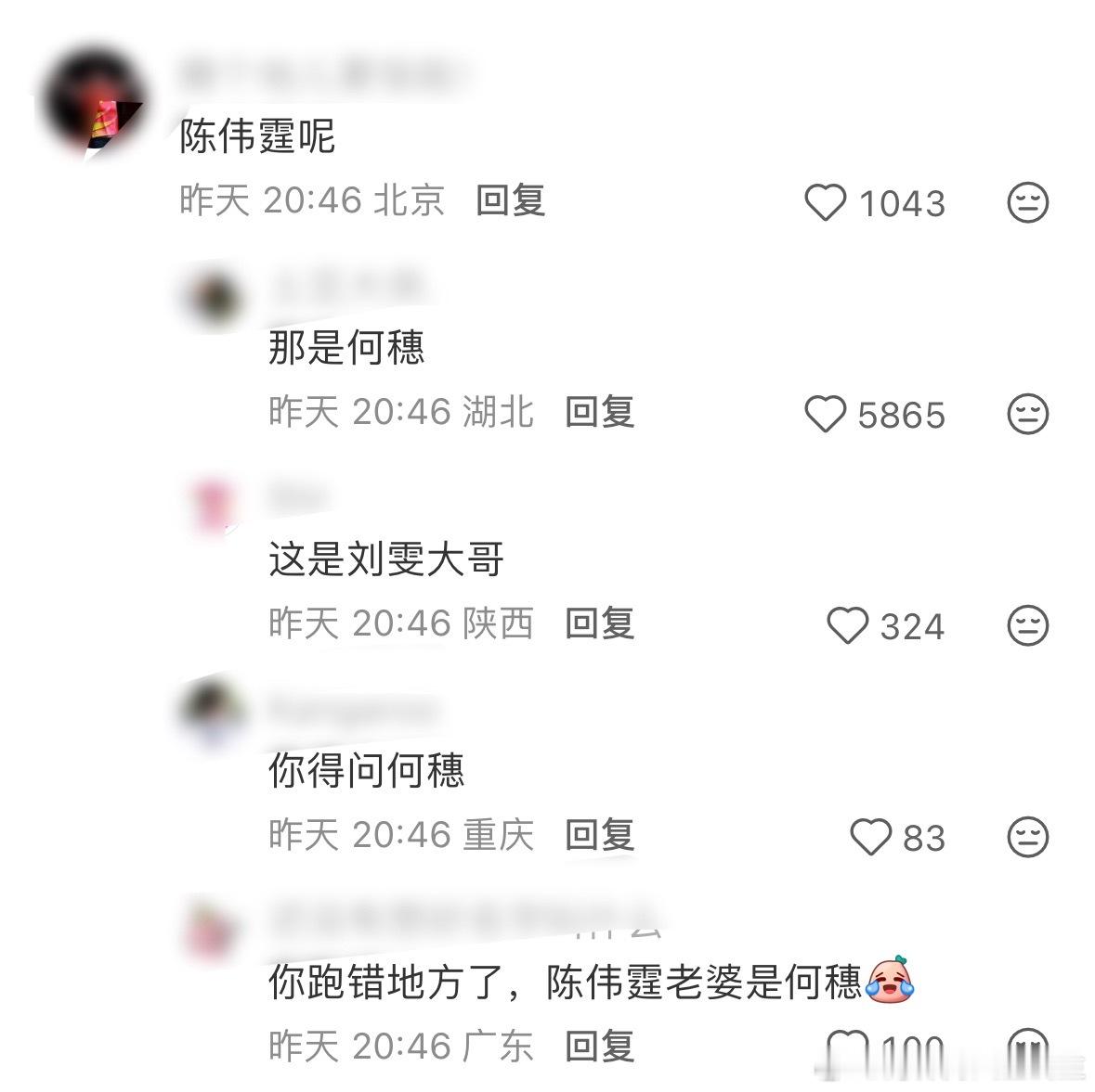 笑死在刘雯的评论区里Q:陈伟霆呢?A:那你得问何穗Q:付辛博给你拍的?A:那叫井