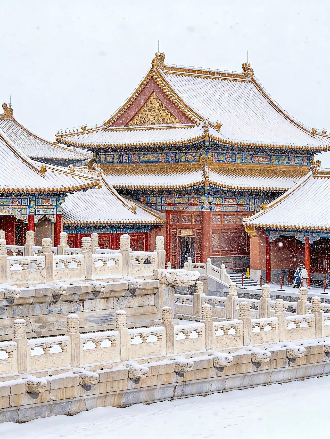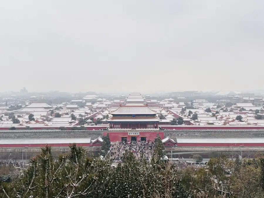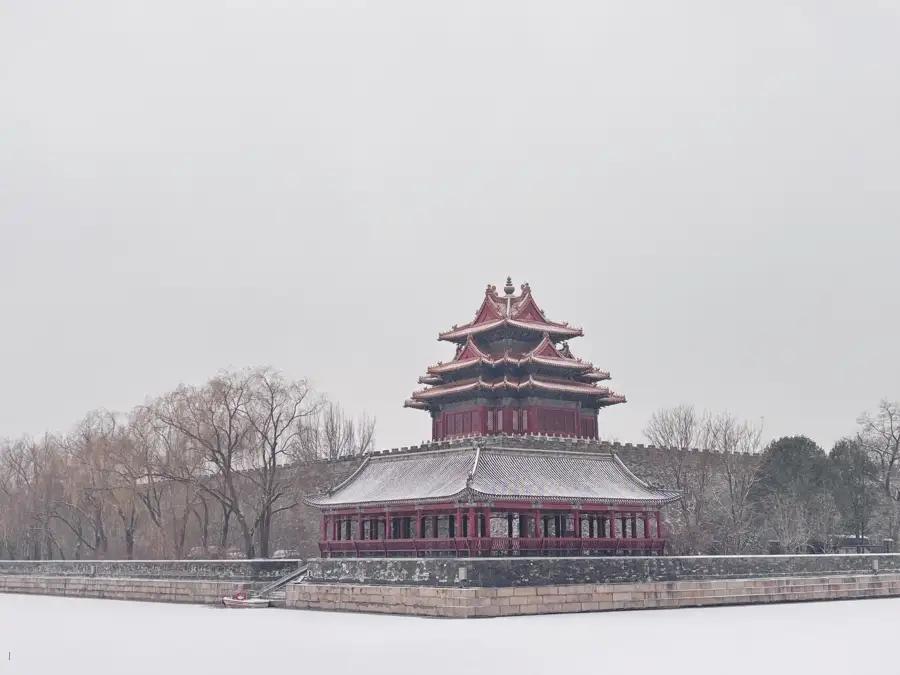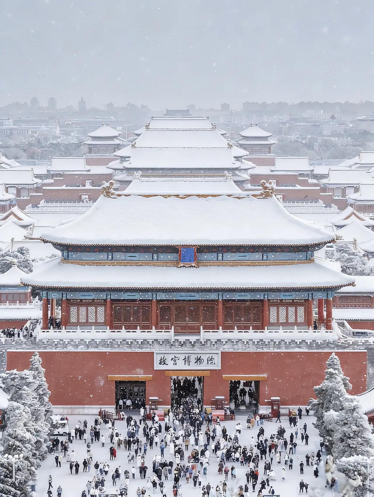 北京的雪如约而至! 那雪成片成片地,悠悠地、沉沉地,从望不见尽头的云层深处飘洒下来。 天地间倏然静了——不是全然的寂静,而是那市声车马声,给一层厚厚的、柔软的绒毯严严实实地捂住了…… 这时候,北京,便在漫天飞絮里,缓缓地、庄重地,变回了北平。 雪中的故宫,处处都像取景框。游客停下脚步,拍照、拍视频。 层层叠叠的雪,映衬出深深浅浅的红……那红墙黄瓦就成了最美的画卷,游人举着相机穿梭在雪中,把红墙白雪的盛景定格! 北京下雪了,你的城市下雪了吗?