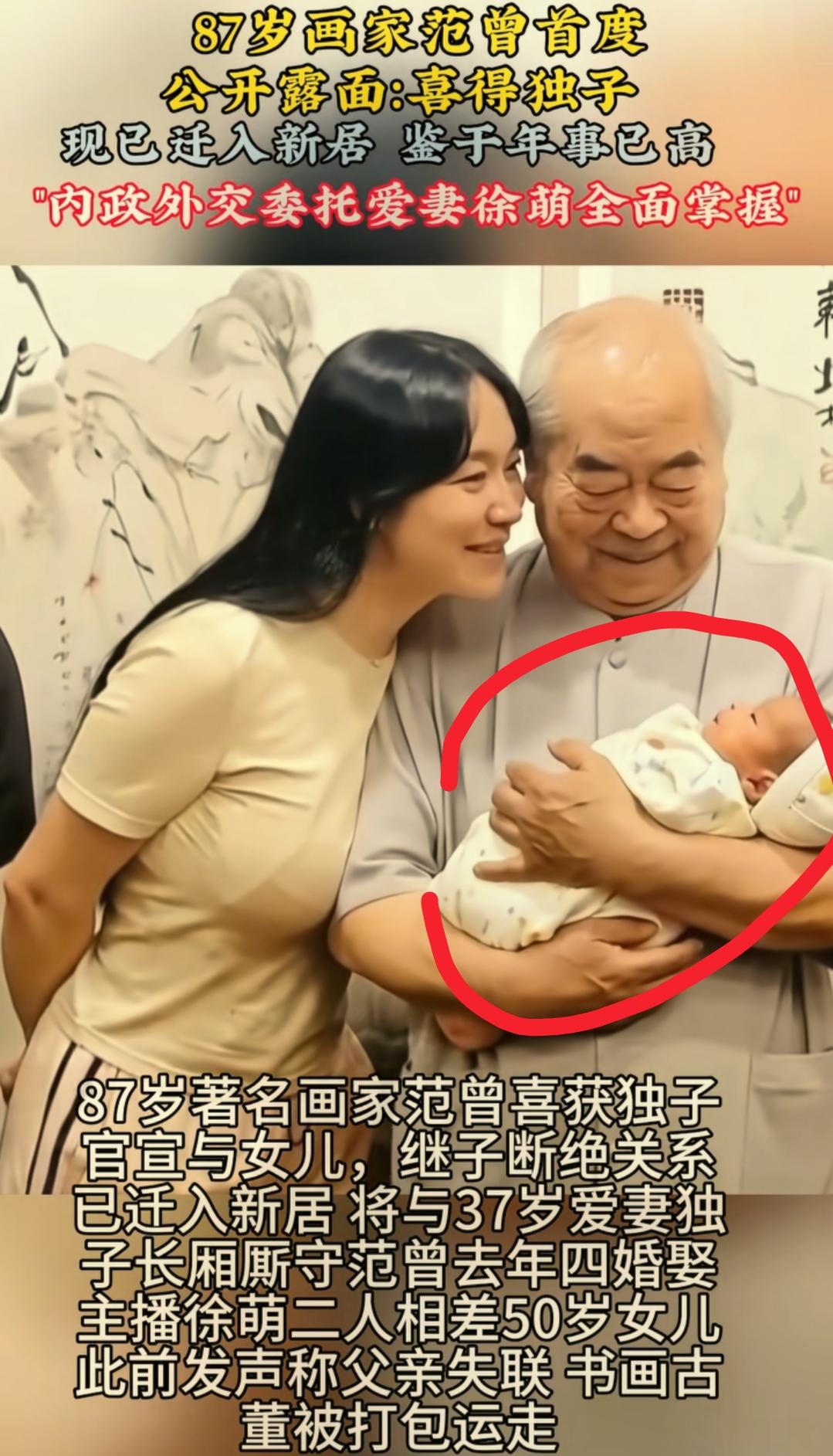 看到范增87岁得子,我忍了 看到他妻子对他照顾有加,我也忍了 但看到网友说,他的妻子只是为了他的家产而来,我再也忍不了 范增87岁得子。 在古代来说,就是老来得子,非常的好意头。 这么老的年纪,还得了一个儿子,就是非常幸福的事情。 看他老婆对他也是非常的照顾有加和恩爱。 我们应该感到幸福。 衷心的祝福他。 至于有网友说他的财产都给了他的妻子和他的女儿,继子做了断裂 这是他家事,外人不应该插手 所谓的人生感悟,就是看到了范增87岁还能生子,就是对人的一生有更多的希望了