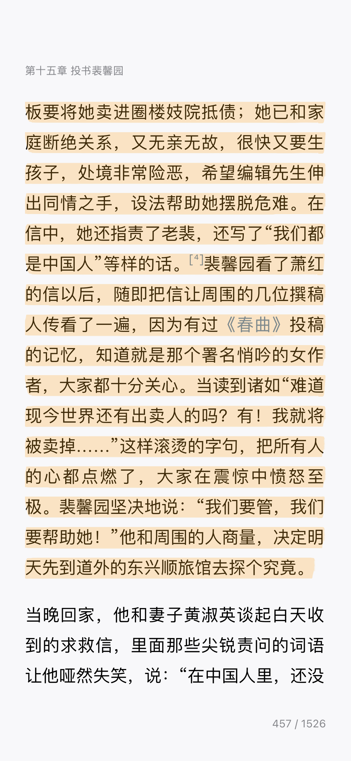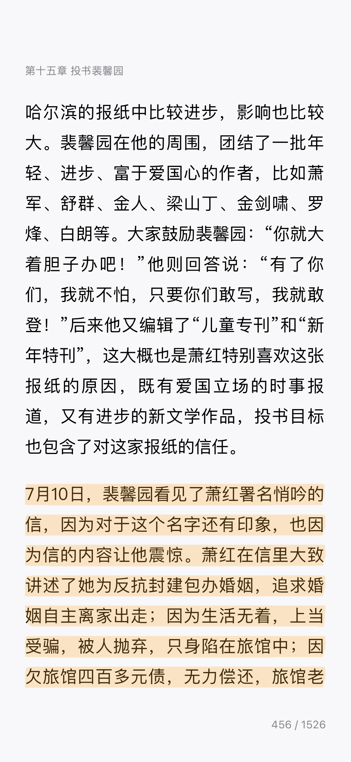 《萧红大传》中的几个细节:清末民初,哈尔滨在中国是仅次于上海的国际大都市;《呼兰河传》中的人物兰哥,原型是萧红二姑家的表哥;萧红继母的异母妹妹,小名开子,也是萧红的朋友,她是萧红晚期短篇名作《小城三月》中翠姨的原型;萧红晚期以自己家庭为环境的小说《小城三月》里,继母的原型是她本人的继母梁亚兰;中学时期,萧红一开始喜欢看的是张资平、叶灵凤的言情小说;萧红第一次接触鲁迅作品,得益于语文教师王荫芬。这位教师是鲁迅作品的爱好者,早在1920年代,她就发现了鲁迅作品的价值;萧红那时就读于哈尔滨的东省特别区区立第一女子中学校,它的前身是崇德女子中学,简称“东特女一中”。萧红有一篇短篇小说《手》,就是以这所中学为背景;曹革成《萧红的第一个恋人》(《世纪》2014年2月)披露,汪恩甲在“人间蒸发”了八十年之后,旧影重现人间。他于1933年初(或1932年底)结婚,妻子是伪满国高毕业生,一直未参加工作。1933年中生一女,1935年5月生一子。1933年赴欧洲留学(一般说是法国,但回来后为自己堂侄女们起的洋名字都用德国贵族的语音标记“冯”,因有人推断他是去德国留学,他通七种外语,据说留学期间去过不少国家),1937年回国,日伪期间拒绝为当局做事,多数时间赋闲在家搞翻译度日。1945年抗战胜利,由同学帮助,得到一个国民党接收大员的空头职务。由于其长兄死于苏军攻克顾乡屯的战斗,他不得不辞去公职,回家管理家族土地产业。1946年,通过哈尔滨市文书人员考试,进入政府单位工作。后来在土改期间,因为不承认自己是大地主,反抗批斗而入狱,1949年前后犯大烟瘾死于狱中。妻子改嫁,但与汪家一直有来往(整段摘录自书中);东北呼兰县人以前管卢布叫羌帖,萧红的家人买过。书中写道:“那是在十月革命前夕,由于白俄的政治恐慌,卢布迅速贬值,所有的人都在设法抢购,萧红的母亲姜玉兰买得最多。他们一宝押在了俄国的政局变化上,渴望十月革命失败,卢布顺利升值,好顺势发一笔。姜玉兰日夜烧香念经拜佛,酒肉款待深夜外出买羌帖(卢布)的老厨子,家里像是在闹鬼。父亲张廷举则不赞成买,骂母亲‘受穷等不到天亮’,母亲则回骂他‘愚顽不灵’。父亲说,皇党和穷党是俄国的事情,谁胜谁败我们怎么能知道。而祖父和老厨子则认为,那穷党就和胡子一样!那是个胡子头,马粪蛋不进粪缸,走到哪也还是个臭!十月革命胜利以后,家里终于安静下来,他们说穷党上台了,母亲躺倒了一言不发,默默地流泪。无疑,她买的卢布都成了废纸。”