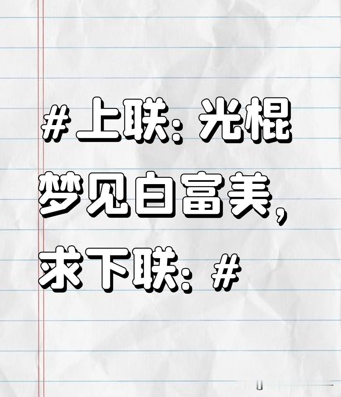看到“光棍梦见白富美”这个上联,我一下想起那个歇后语“光棍梦见娶媳妇——净想好事”。要说这光棍梦里邂逅白富美,可不就是净做美梦嘛。 下联我觉得可以对“穷人幻想中巨奖”。就像咱村小光棍张武,想着能在火车站睡一觉就有美女相伴,和穷人幻想中巨奖一样,都是心里美美的奢望。这上联下联都透着股不切实际的美好憧憬,还挺搭!