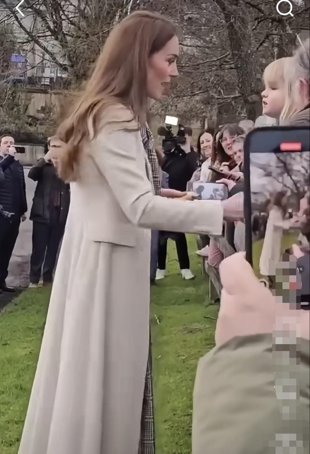 凯特王妃真是亲民典范啊:近日,出席公务的凯特王妃坐车遇到路人。她要求司机立马停车。穿着高跟鞋的她微笑着跑向路边人群,真的挺厉害啊,即使跑也依然保持着优雅姿势,美丽依然! 她亲切地和大家打招呼,握手聊天。其中和一位怀抱中小女孩聊得火热。小女孩也挺热情,递给凯特王妃一个香蕉。凯特王妃拿着香蕉直说谢谢。说完,又还给小女孩,转身离开,小女孩又把香蕉递回给凯特王妃。香蕉掉地上了,凯特王妃弯腰捡起来,再次还给小女孩儿。之后,又和其他人握手告别后转身离开。 好暖心的一幕!虽然地位高,却和普通人一样。热情礼貌地对待小女孩,对待大家。凯特王妃真是亲民典范啊!