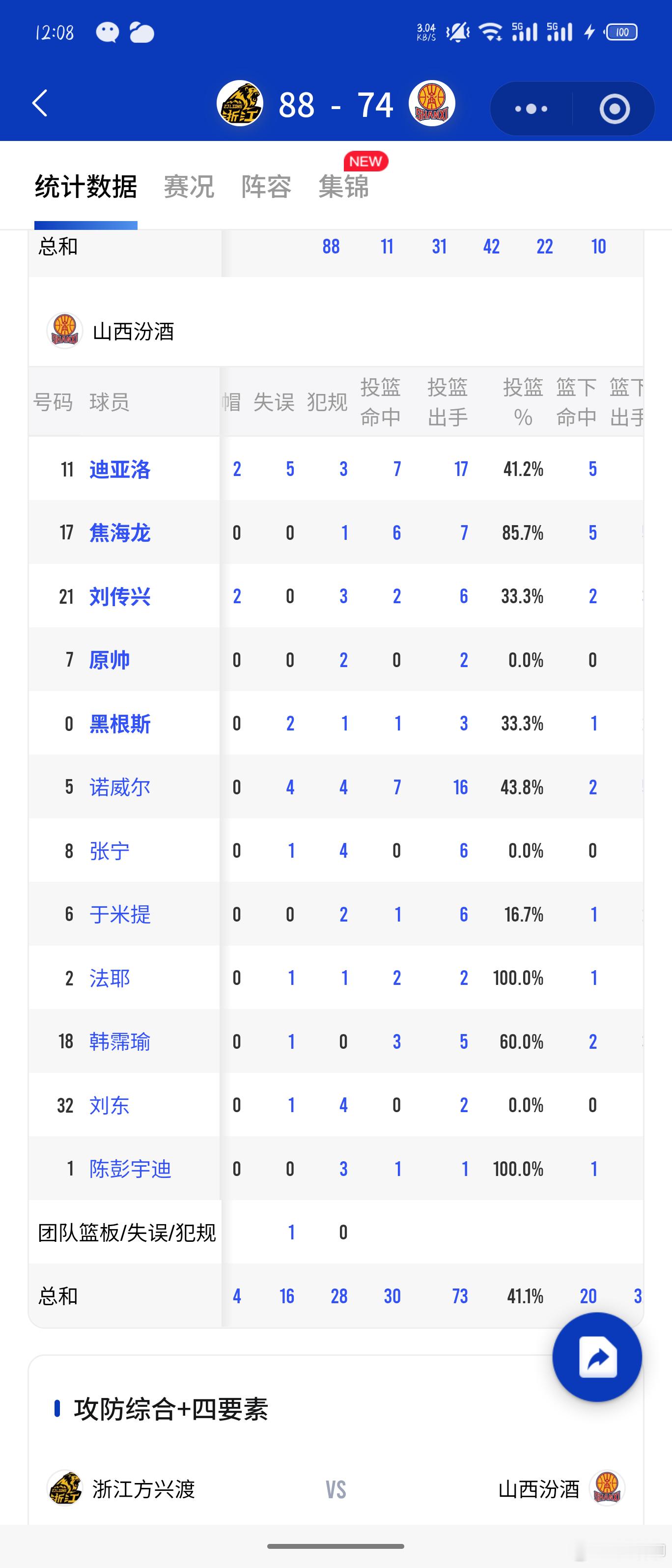 昨天CBA开幕式,本土球员和外援出手对比:广厦:布朗13次,塔克11次,胡金秋10次,朱俊龙5次,孙铭徽5次山西:迪亚洛17次,诺威尔16次,焦海龙7次,张宁6次,刘传兴6次除了大秋以外,国内原来比较知名的球员出手机会都不多,这就让我们又担心同样的那个问题:给外援打下手习惯了以后,在国际赛场上关键时刻谁能承担责任?尤其是外线的运动员。