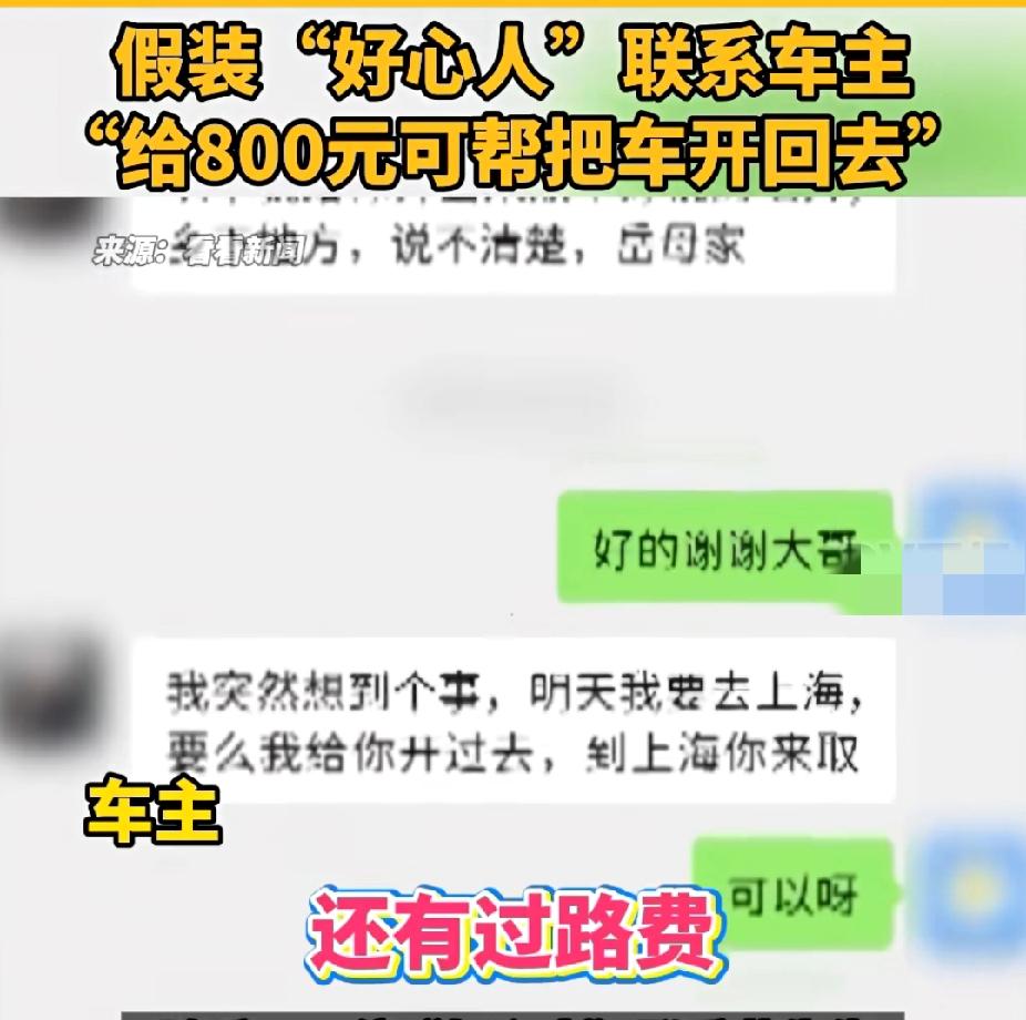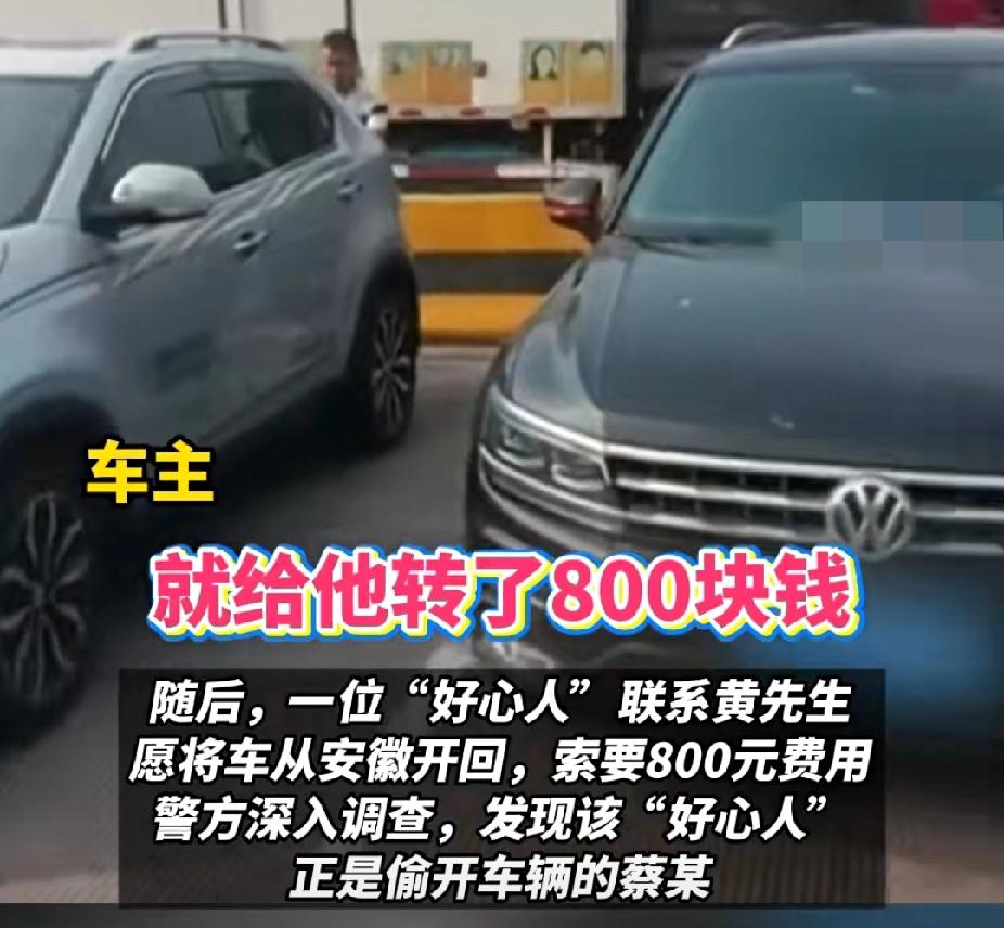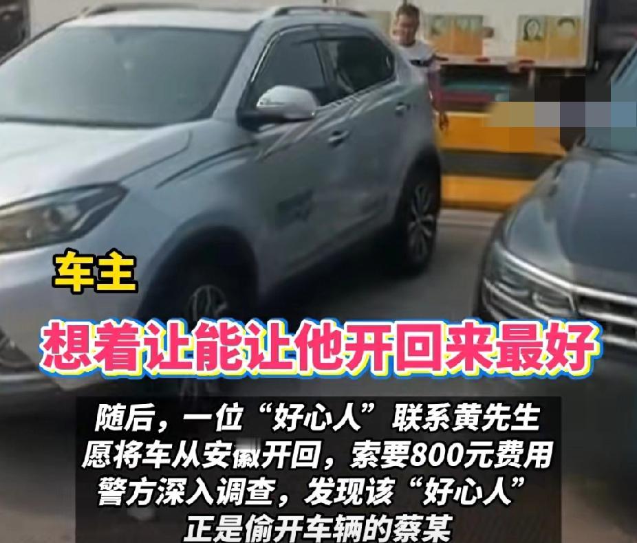 奇葩!男子偷车后因没钱支付高速费而弃车,又假装“好心人”联系车主:“你车堵我门了,赶紧挪走!” 今年9月份,上海市浦东区的黄先生接到安徽陌生来电,对方上来就喊:“你车堵我门了,赶紧开走,你要是不开走,我就找人把车搞掉了!” 接到电话的黄先生纳闷得不得了:“我的车停在上海的路边停车位,怎么会堵到别人家门口呢?” 调取附近监控后发现,一位年轻的男子在夜晚开走了自己的车。 于是黄先生添加了对方的微信,对方拍了照片给黄先生,确实是黄先生的车! 对方又称自己刚好要去上海,可以帮黄先生把车从安徽送回上海,黄先生一想这样自己还能少折腾一趟,于是欣然答应了! 对方称车子没有油了,还需要过路费,共计800元。还在懵圈中的黄先生果断转账800元给对方,希望对方能如约将车辆送回来! 结果对方将车子送回来时,黄先生本来想好好感谢对方,结果对方下车的一瞬间,黄先生一眼认出:眼前的“好心人”像极了监控中偷车的男子。警察深入调查后,发现此人确实是偷车的男子蔡某! 蔡某面对警方的询问,将整个过程如实交代! 原来,蔡某因为没有找到工作而支付不起旅馆费。发现车辆没锁,且钥匙就在车里,于是蔡某将车开走。结果因为支付不起高速费,蔡某弃车于服务区。蔡某没钱回家,且担心车主报警,于是自导自演了这一出“好心人”的戏码,企图洗脱自己的罪责! 审讯室里,蔡某询问:“警官,我这个事情严重吗?会坐牢吗?” 警官严肃地告诉蔡某:“你离坐牢只差一步,还好你及时收手!” 可能有的人会说:“蔡某不仅偷车,还以欺骗的方式向黄先生索要800元,明明是双重罪名,怎么能说是及时收手了呢?” 法律法规我们不做深度剖析,蔡某收到黄先生的800元后,没有选择驾车继续逃跑,而是选择将车送了回来。无论如何,这个结果是好的,黄先生避免了更大的损失,蔡某也终止了自己的违法犯罪行为! 或许蔡某是因为害怕对方报警而送回,但结果没有太差,或许应该给其一次改过自新的机会。坐牢不至于,但批评教育和相应的处罚是少不了的! 对于此事,你怎么看呢?上海 偷车