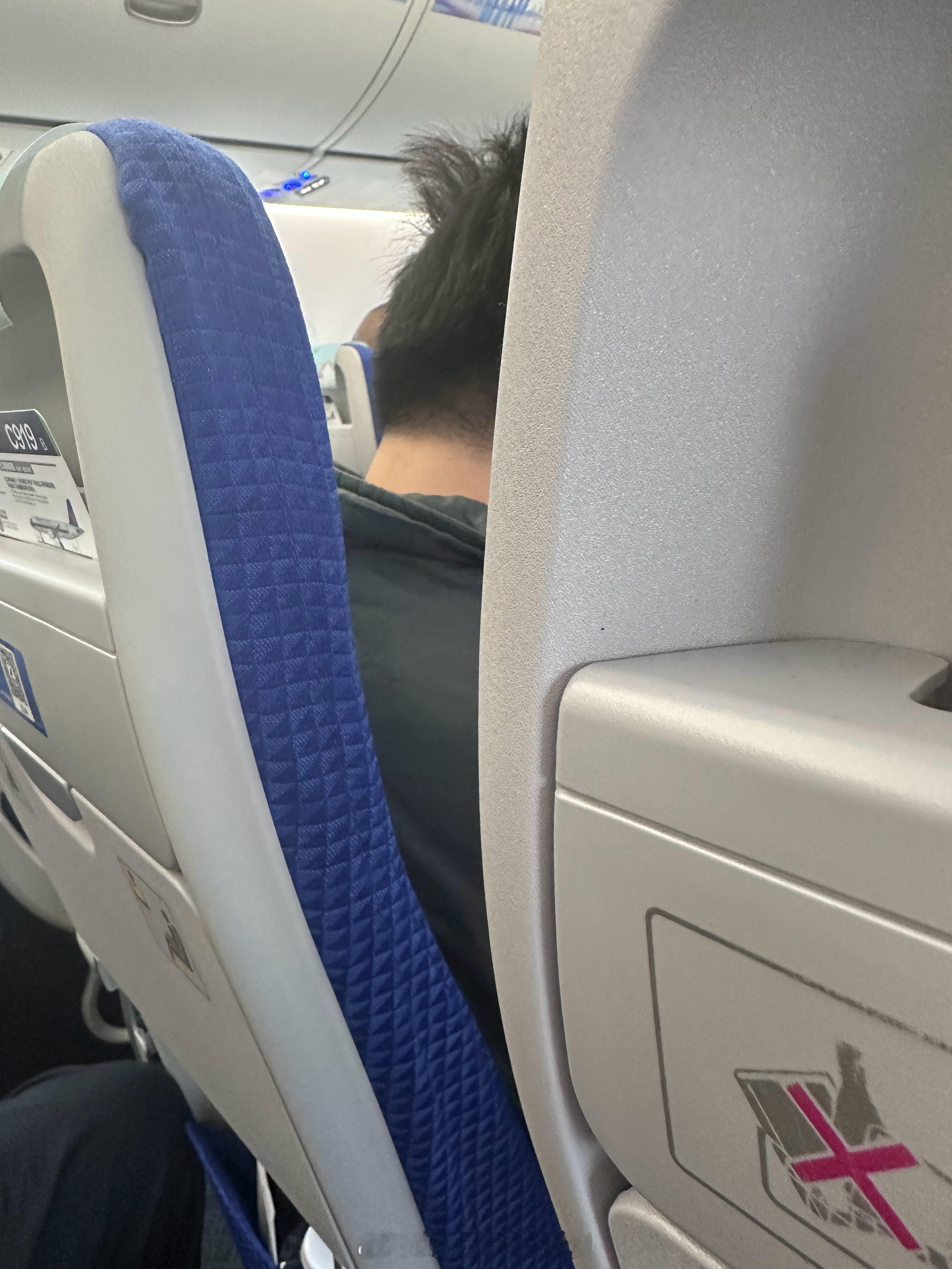 C919,刀片座椅,很薄,但其实坐着还凑合,虽然不够柔软,但身体感觉也没那么不适。