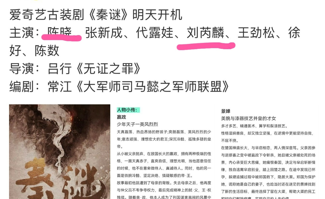 刘芮麟携手陈晓拍摄《秦谜》,剧中他饰演的郑国带着特殊身份标签,在历史洪流中坚守自身专业信仰。刘芮麟在和陈晓拍秦谜秦谜里有刘芮麟