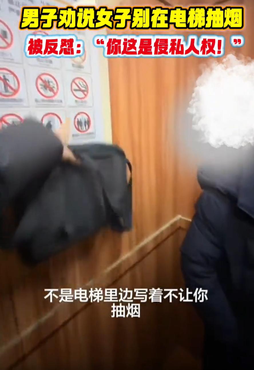吵翻天!吉林,一男子乘坐电梯,结果一上来就闻到一股烟味,他发现一名大姐正叼着烟在电梯里抽,男子拿出手机拍摄提醒,电梯不让抽烟,结果却被大姐反怼:我就抽了,你这是侵私人权! 视频中,能看到当时电梯里人不算少,电梯里还有其他人,有年纪大的阿姨,也有年轻的女孩,大家都默默忍着,没人出声。男子觉得这样不妥,就拿出手机,一边拍一边指了指电梯内贴着的禁止吸烟标识,让大姐自觉一点 万万没想到,这一举动却引起了大姐的不满,她把音量调高,回应说:怎么抽个烟就不自觉了,不让抽烟,我就抽了能怎么地!我告诉你,你侵私人权,听到没有,我咋的了你就录我? 男子试图解释,自己只是提醒她别在电梯抽烟。大姐并不听,电梯门一开,她甩下一句,你敢录我,我就敢告你。随后大步离开 最后,男子也是把这段视频发到了网上 这件事引起了不少讨论。有人觉得,在密闭的电梯里抽烟,危害他人健康,本就是不对的,还好意思这么理直气壮?也有人认为,提醒归提醒,直接举手机拍摄,确实容易激化矛盾,而且事后传到网上,也涉及对他人的曝光 其实我觉得,这个事应该分成两层看 第一层,在电梯这类密闭公共空间吸烟,确实不合适。电梯空间小,通风差,烟味短时间散不掉,不止是味道难闻,二手烟也实实在在影响他人健康。墙上贴着禁止标识,就是一种公共契约的提醒。大姐的行为,首先是漠视了这份公共约定,影响了同乘的其他人 第二层,是劝说的方式。当面举起手机录像,在很多人感受里,带有一种“取证”和“对峙”的意味,容易让人感到被冒犯和挑衅,所以大姐反应激烈,也不难理解。如果一开始只是口头提醒一句“这里不好抽烟”,或许会是另一个结果 但话说回来,为什么有人会选择直接录像?或许正是因为以往温和的提醒,常常被无视、被回怼,让人感到无奈,才想到了这种“留证”的方式