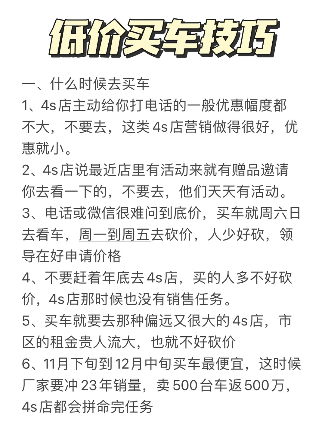1️⃣问销售:“现金优惠还是综合优惠”✔️