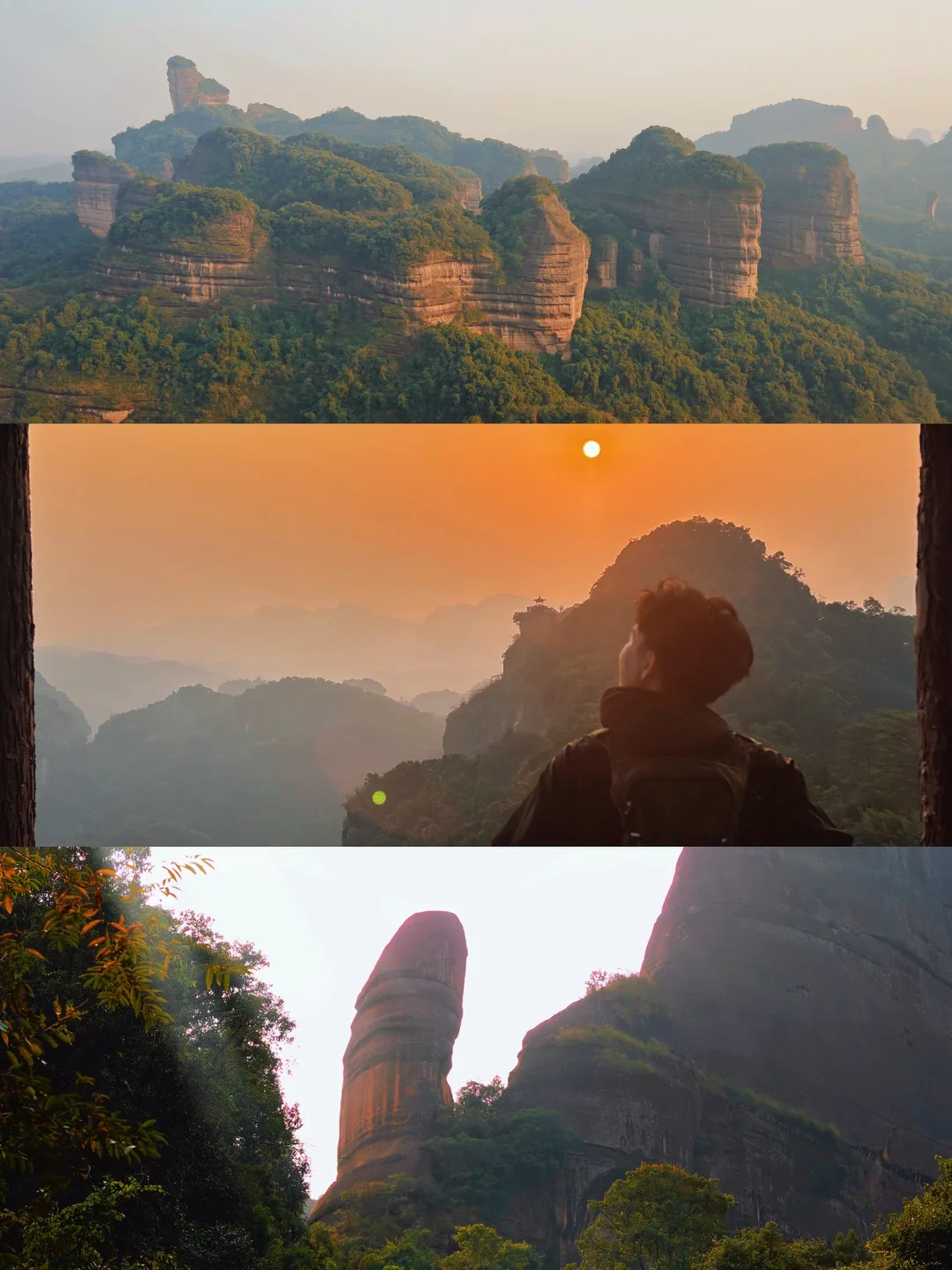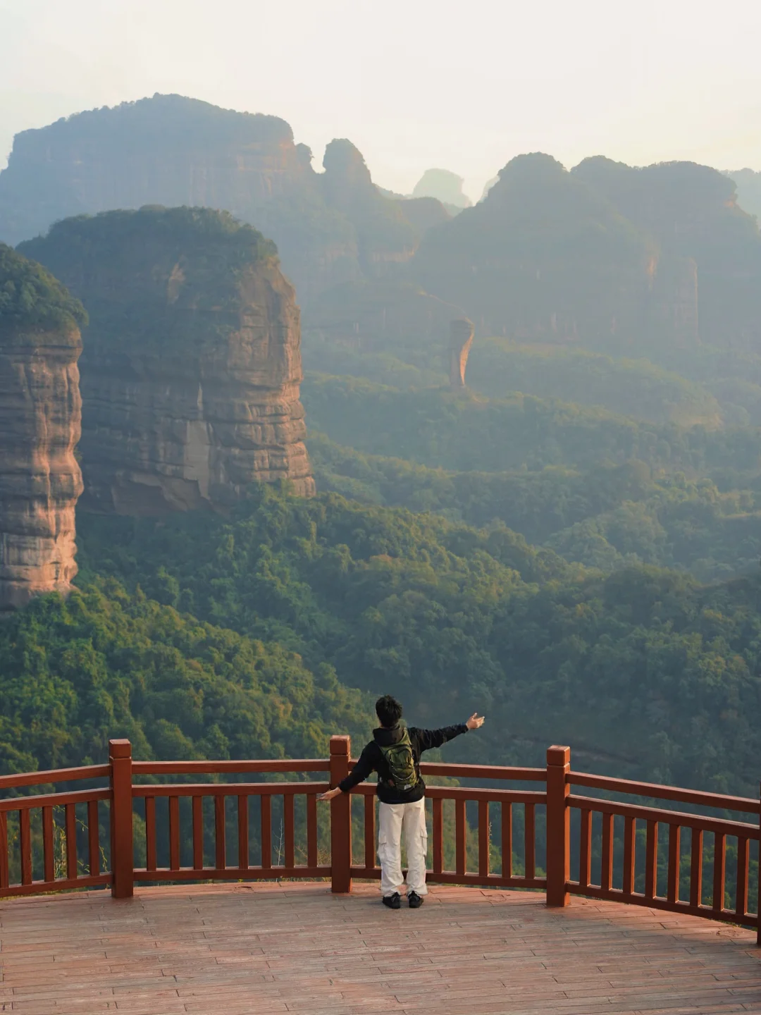 4️⃣长老峰:可以坐索道上去单程40,来回60。山顶可以看全丹霞地貌,韶音亭欣赏最佳。