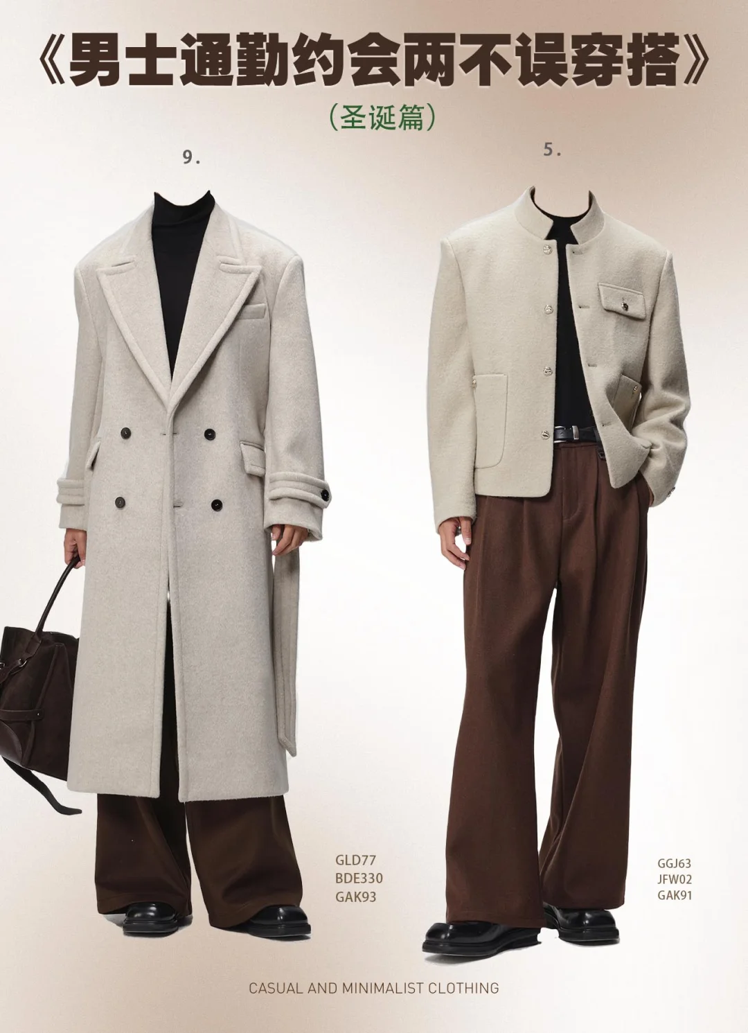 9️⃣米白长款大衣+黑内搭:浅色系大衣温柔又大气,通勤穿适配各种办公场景,约会时化身儒雅绅士,好感度拉满