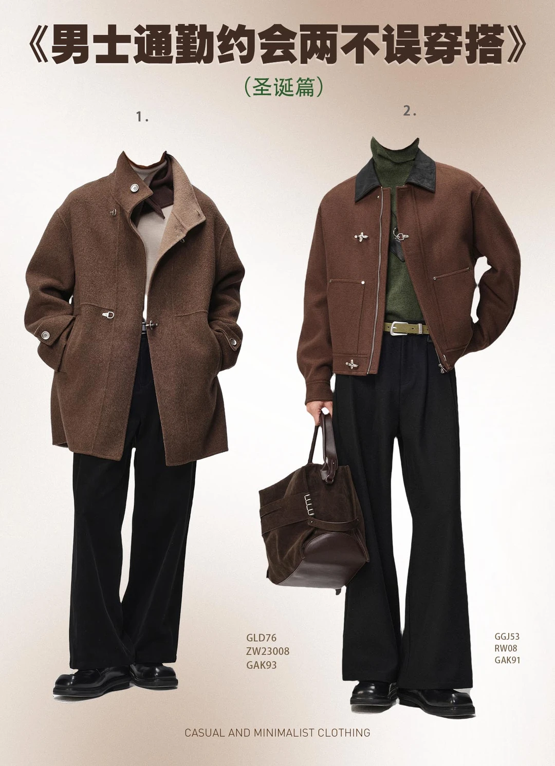 2️⃣咖色工装夹克+黑裤:工装风夹克利落又有设计感,通勤穿不沉闷,约会搭个质感手拎包,痞帅感直接拉满