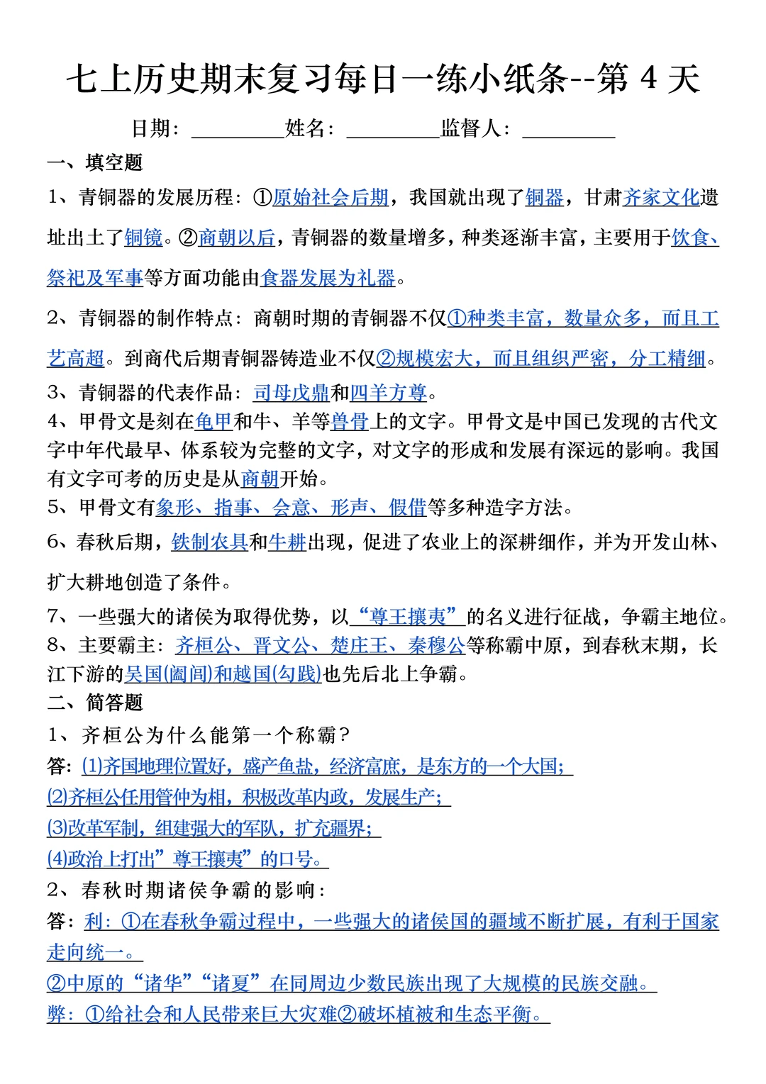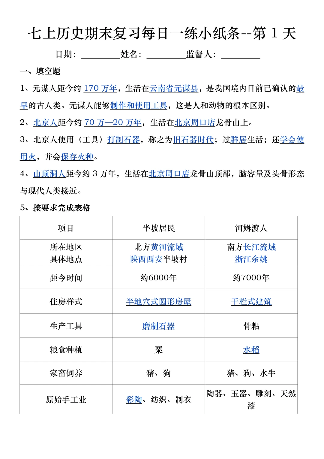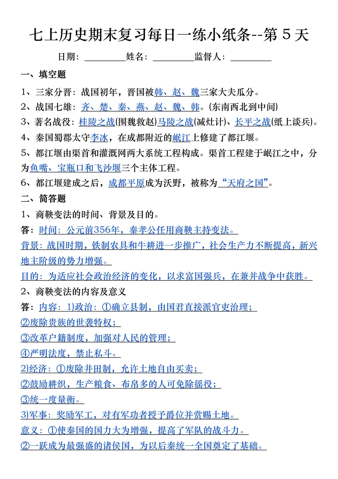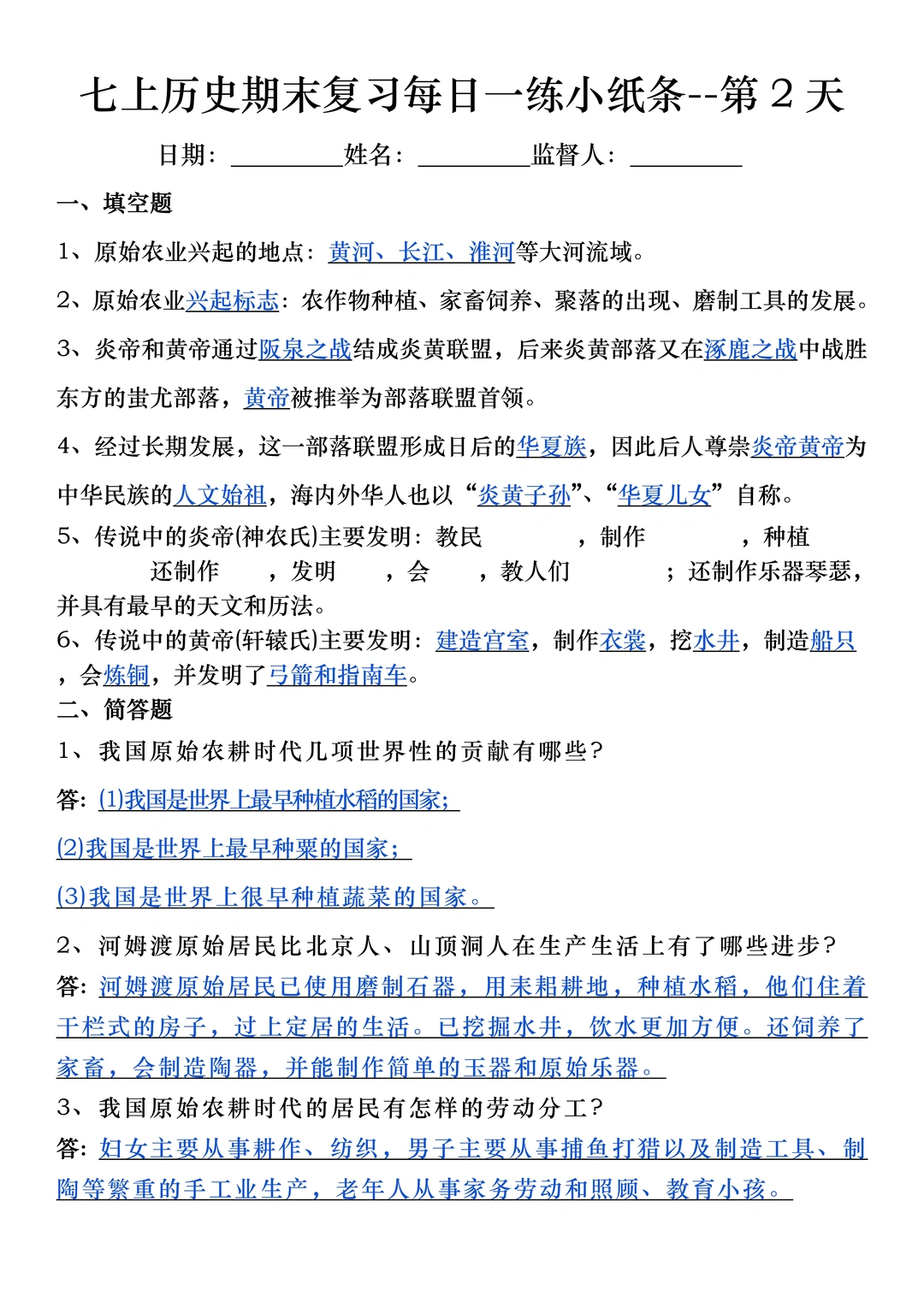 家长收藏孩子受益 初中历史笔记 知识点总结 七年级历史 七年级上册历史 七上地理 初一历史 每日一练 默写小纸条必考考点 期末复习期末考试