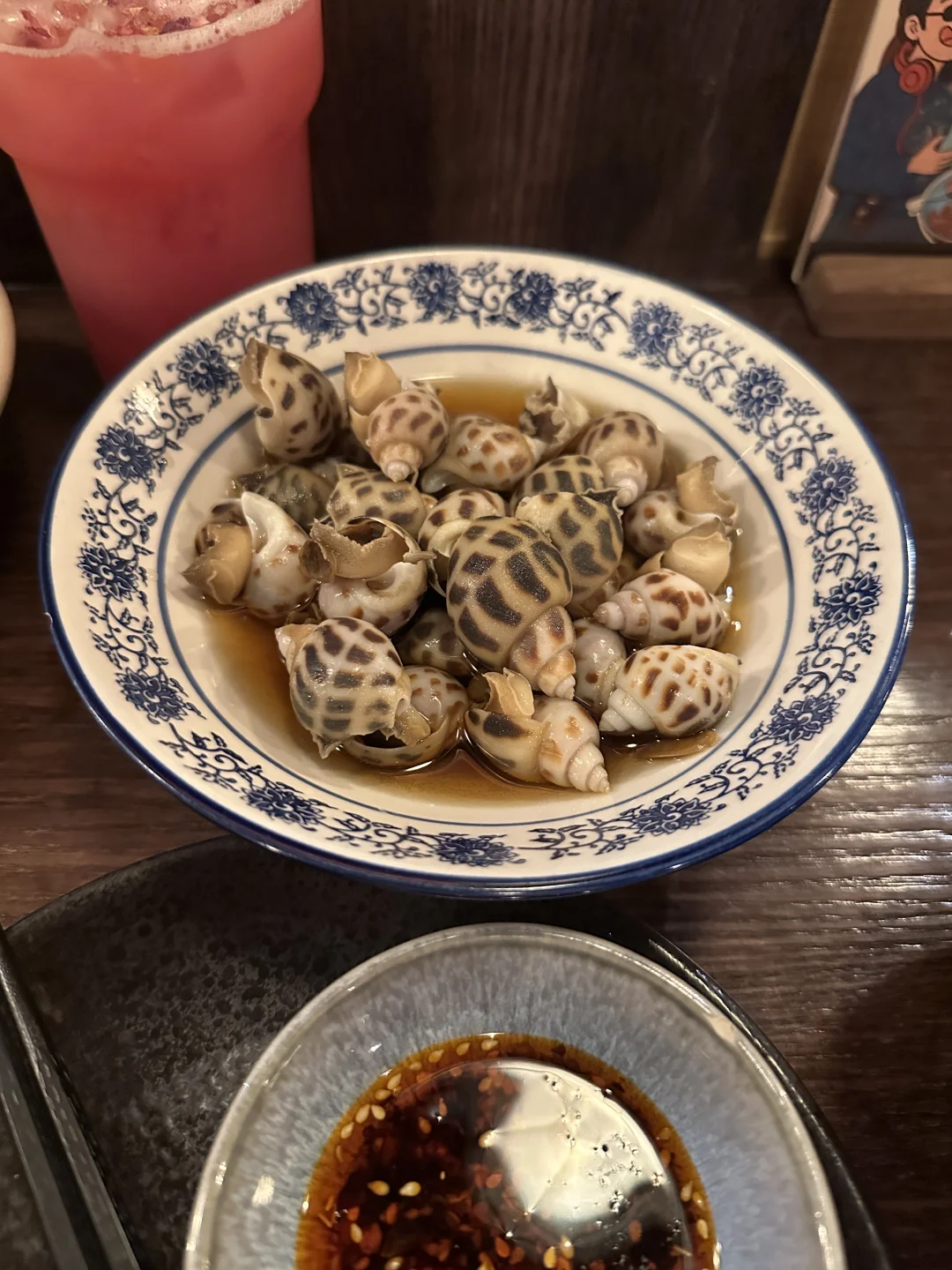 先炫速腌醉花螺!冰冰凉凉的端上来,透着淡淡的酒香,用筷子一挑就出来,肉质Q弹紧实,完全没有泥沙,干净到放心炫。蘸上店里的秘制辣椒酱,香到上头!酱料不算辣,但鲜味儿超浓,裹着花螺一口一个,清爽又开胃,瞬间打开味蕾✨