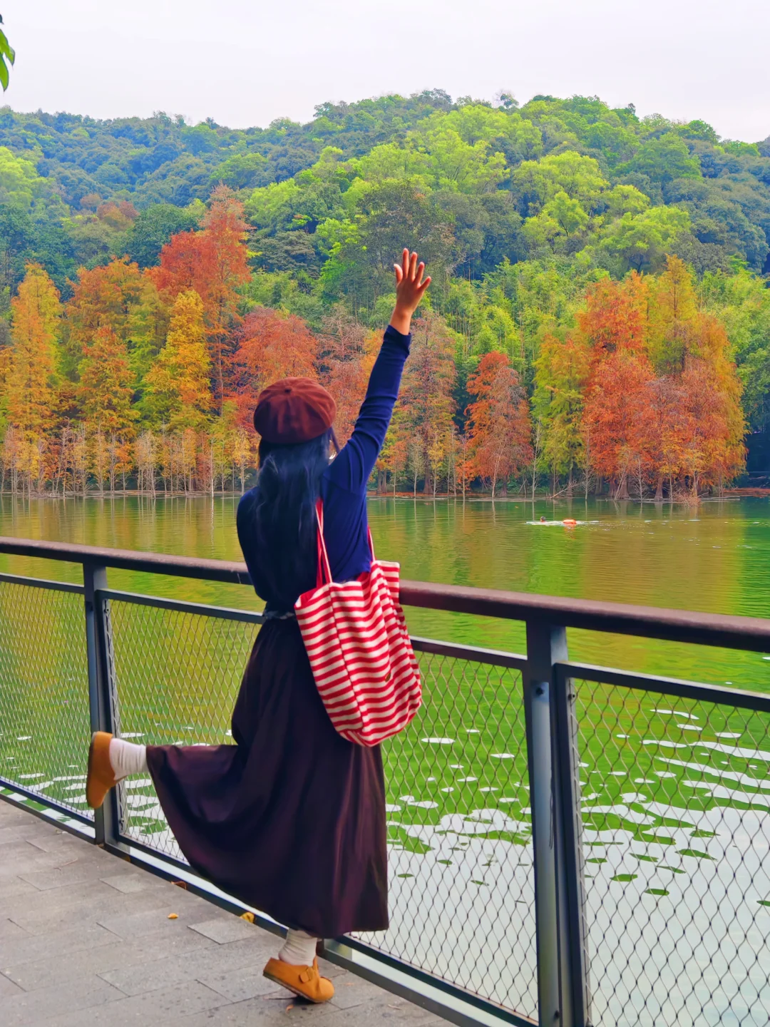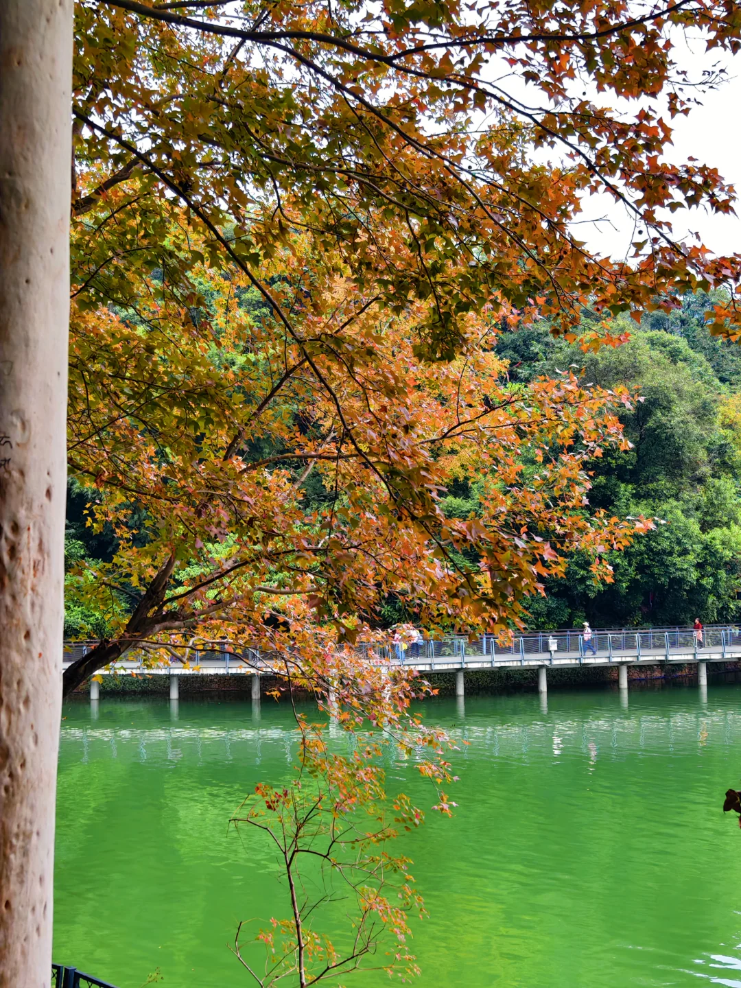 闲来无事,和姐妹去白云山逛逛 小诚不欺我,果然落羽杉是真的黄了 可惜了天气没有特别好的太阳,不然应该会更美啊啊啊! 在黄婆洞水库逛了一圈,水好绿呀,边上的几棵枫叶🍁也黄了👍🏻 📍如果想直冲黄婆洞水库,建议导航到【翠竹园门】上,检票口到黄婆洞水库大概走10分钟🉑达 或者可以从西门进,坐电瓶车上山。 上到黄婆洞顺时针环湖一圈,慢慢走,挺舒服的。 走到白云山粥城还可以点个一盅两件🍵饮饮茶!