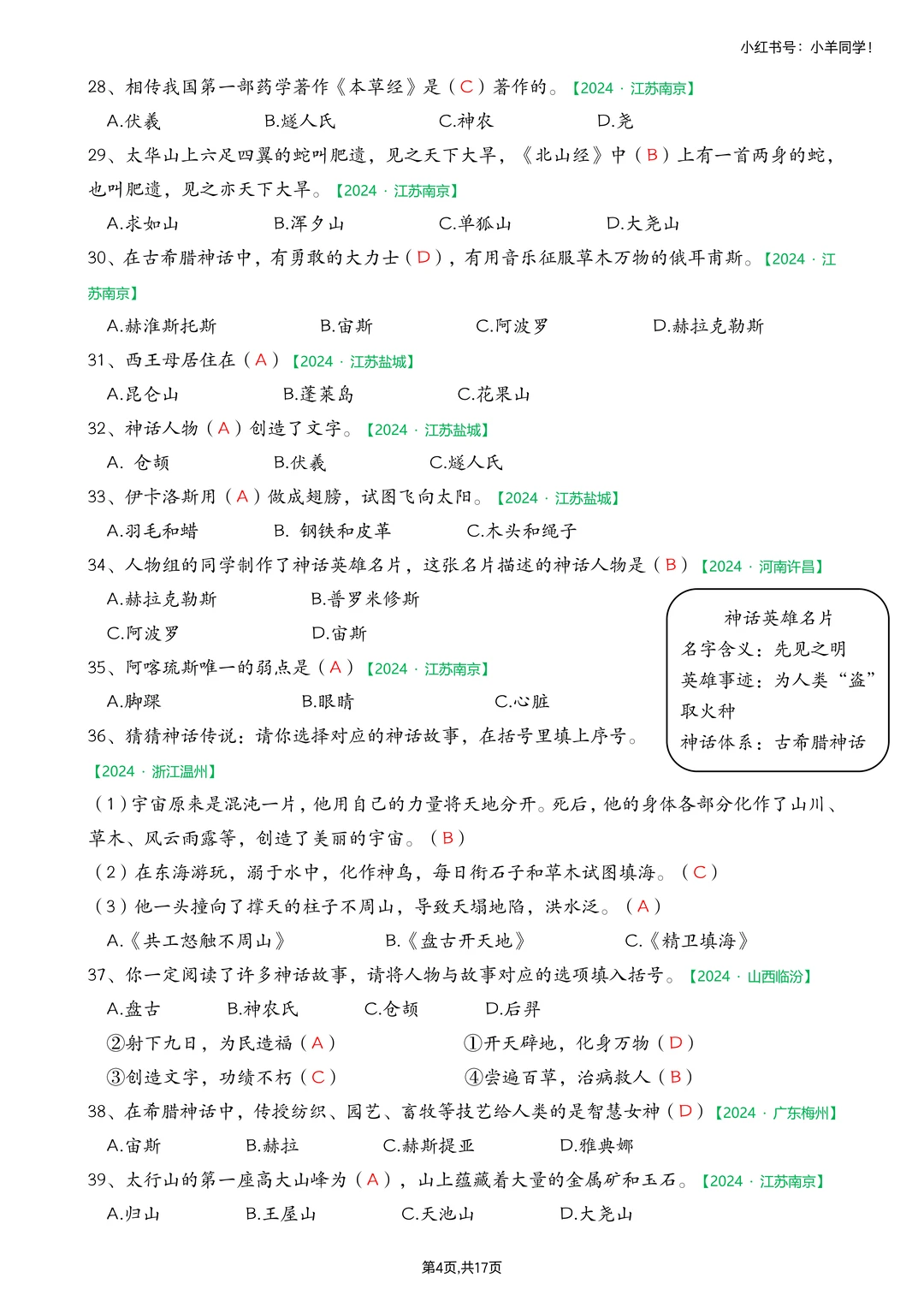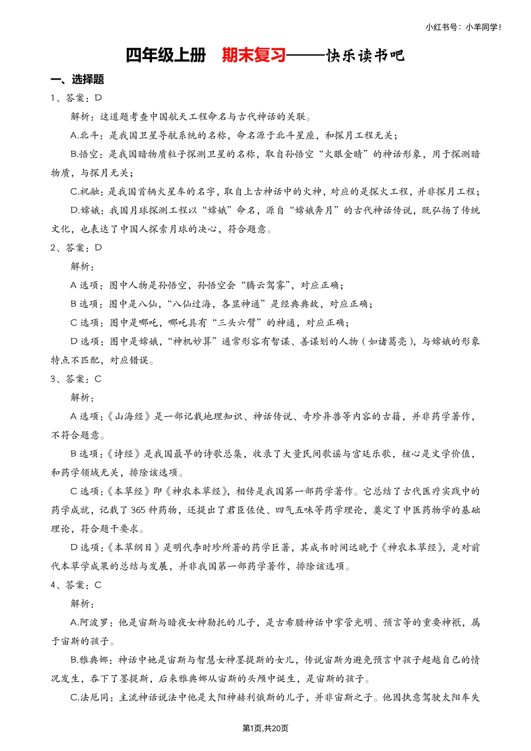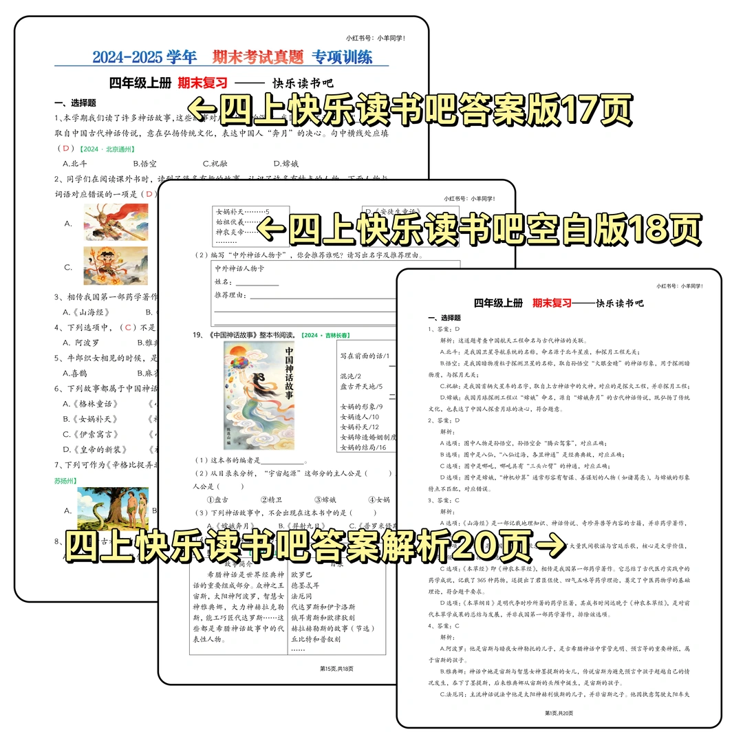 🗂快乐读书吧真题,详细答案解析,其中综合性练习无解析,可看答案版的答案,20页。