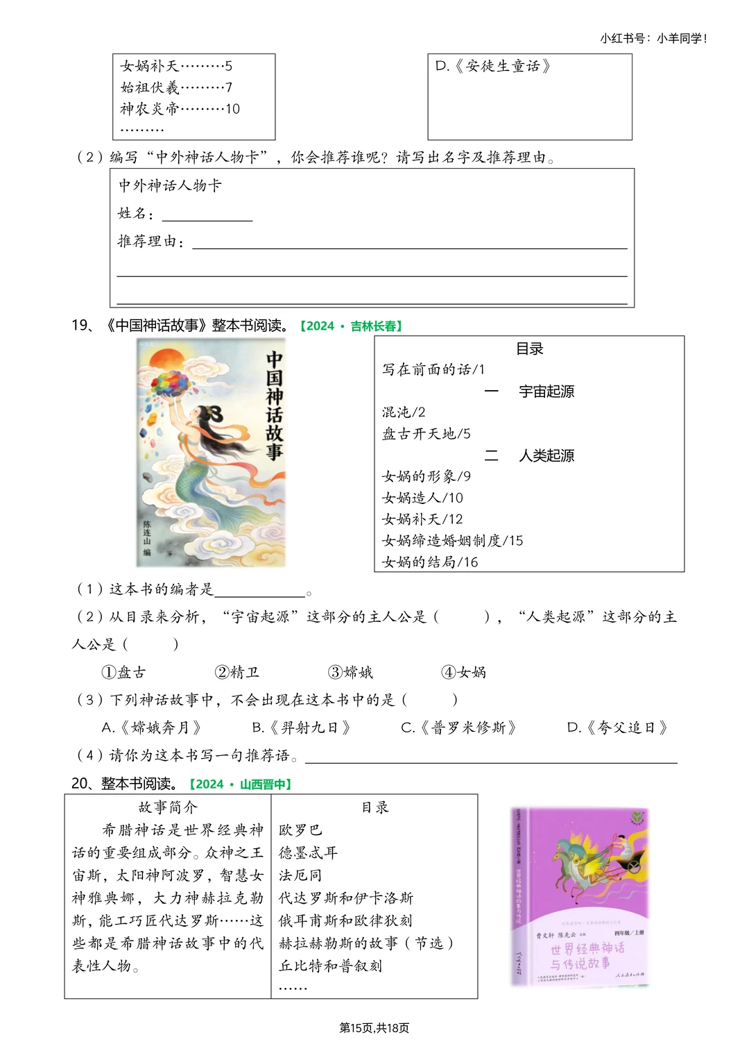 🎈内容:快乐读书吧选择题、判断题以及综合练习题。