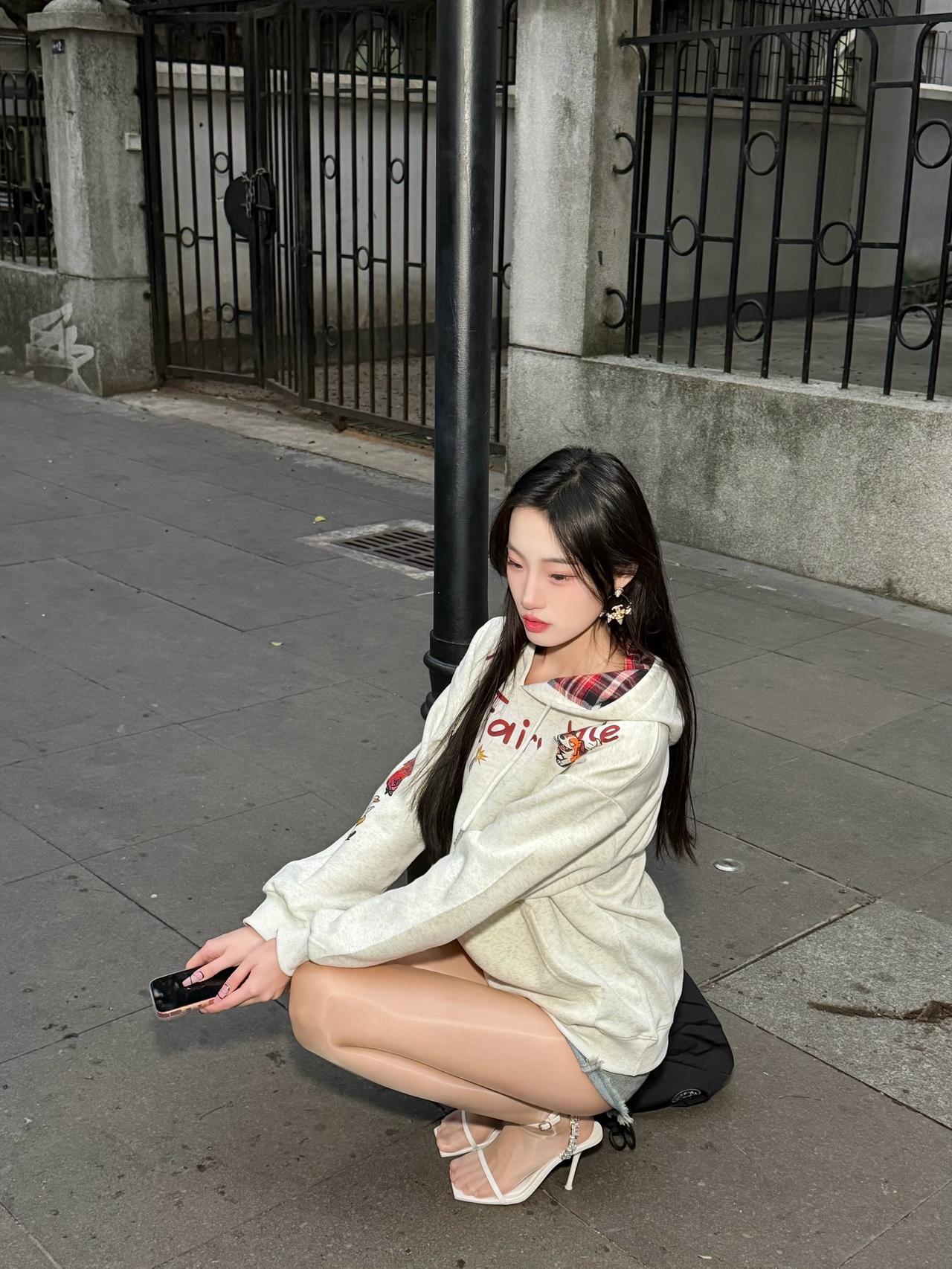 优雅夜晚,时尚穿搭,手机不离手📱✨