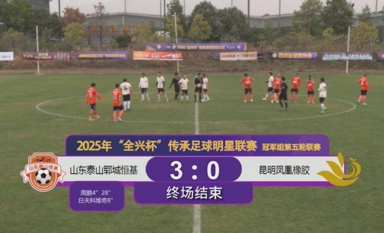 第4和第28分钟,山东泰山传承明星队的周鹏,梅开二度。第8分钟,日夫科维奇也打进一球。