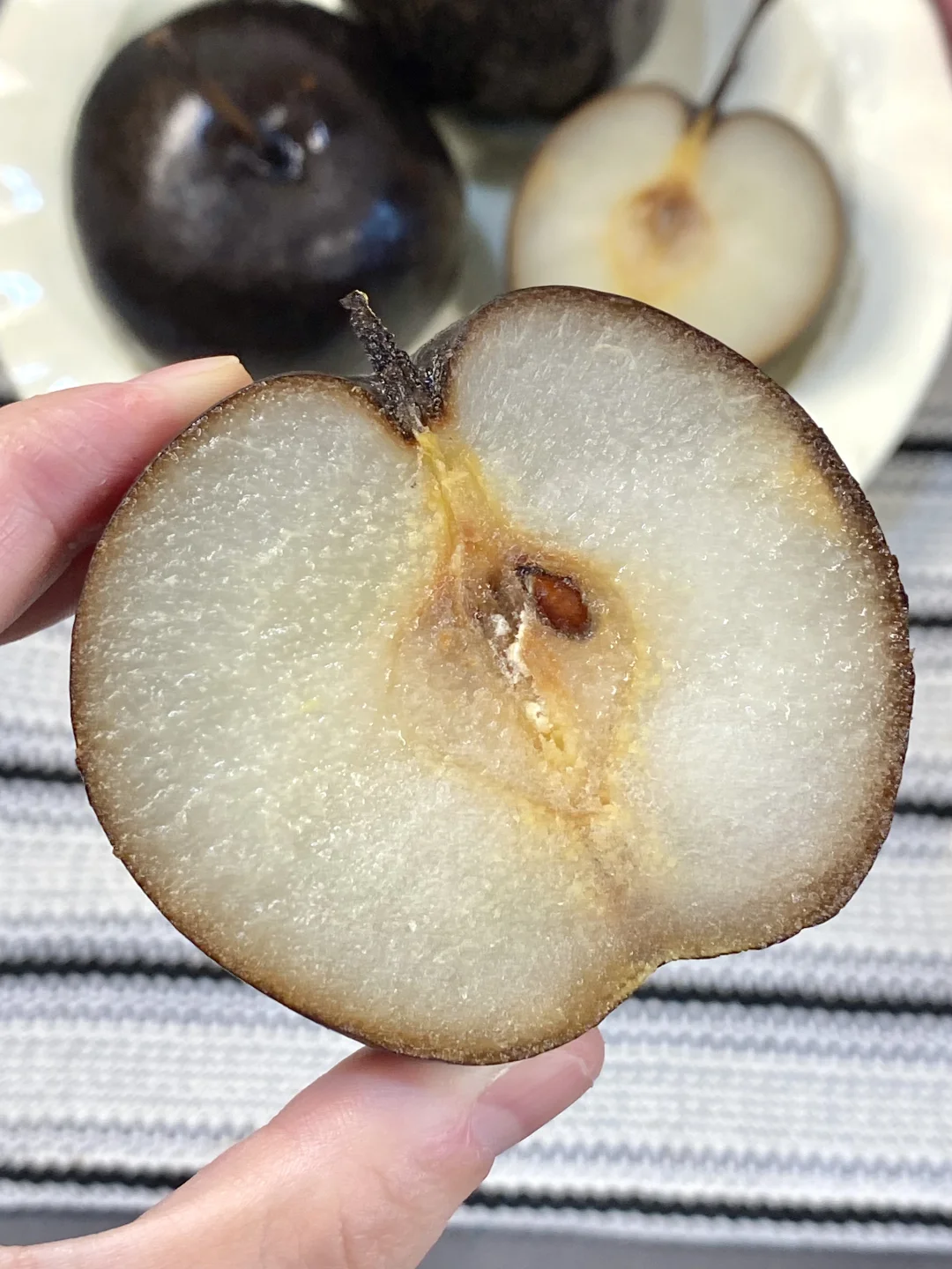 也是get到了东北人民的同款快乐了 冻梨也太太太好吃了吧 看起来黑不溜秋的 一口下去满满都是梨子点清甜 果肉细腻无渣 有两种吃法大家都可以试试 可以微微解冻后啃着吃!还有微微的冰沙感真的绝了 也可以缓冻2个小时 然后直接吸着吃 还没试过冻梨的朋友一定一定要试一下!