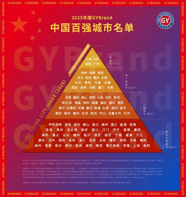 据了解,该榜单主要评估依据是品牌价值,并不是简单按照城市GDP或者人口规模排序,而是从经济实力、质量建设、商业资源、文化体验、居住生活、发展潜力等六大指标进行综合评价,最终发布2025中国城市排名100强名单。
