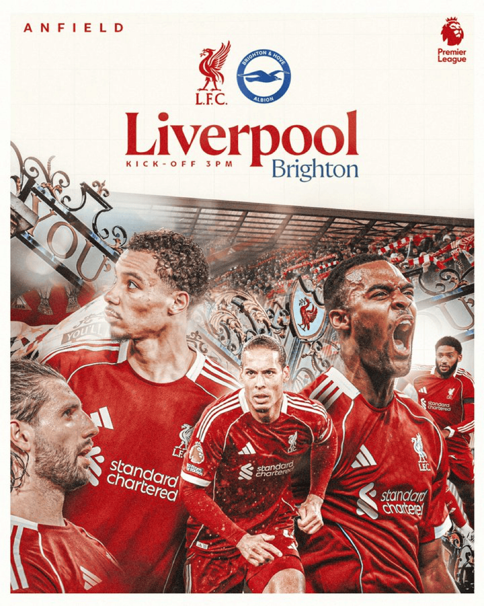 赛前,利物浦官方发布了赛事预告海报:回归安菲尔德,回归英超联赛。