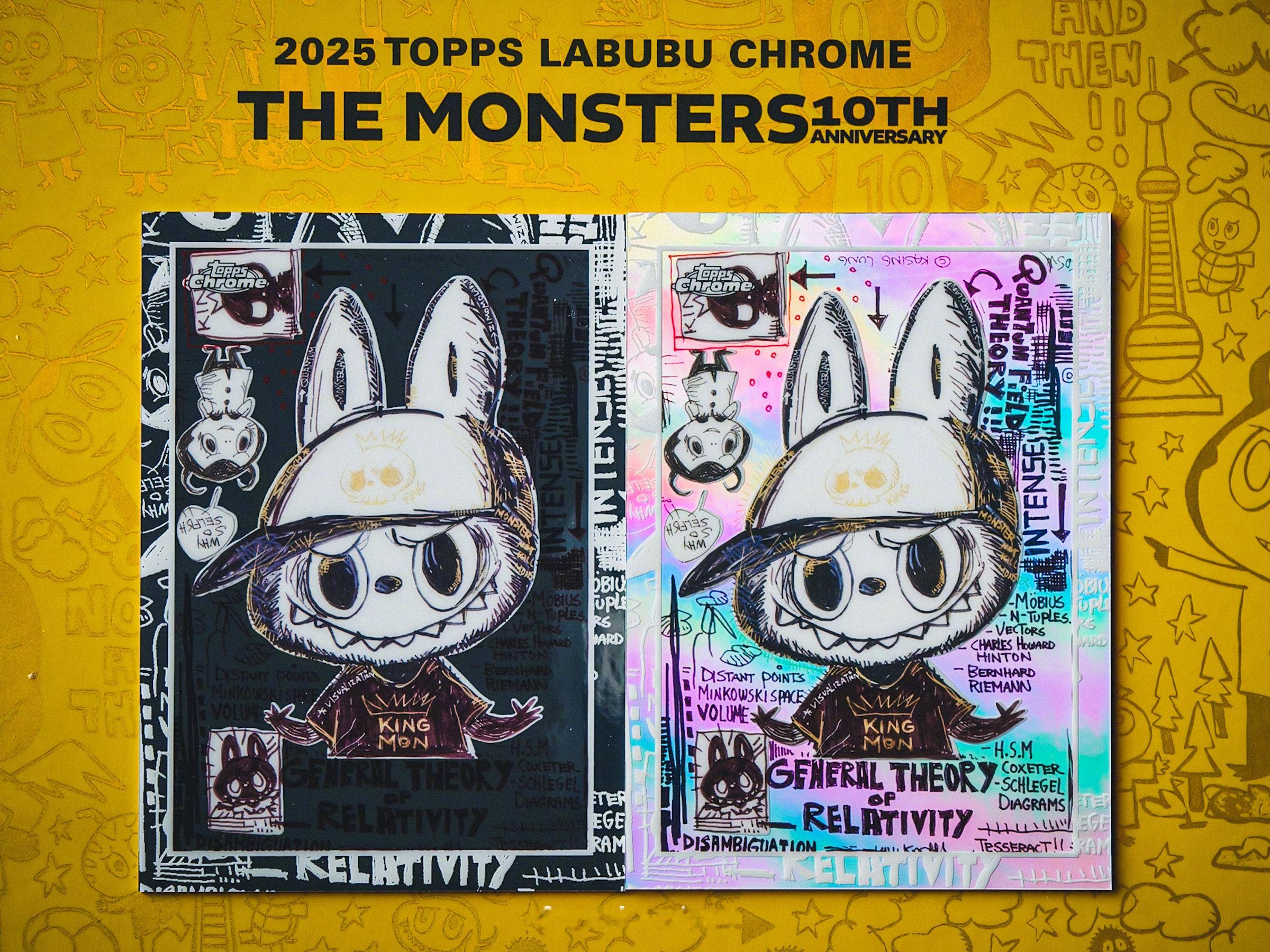 Topps x The Monsters Labubu ChromeTHE MONSTERS 10TH 周年纪念卡一包5张(含1张平行折射,可能有作者签字)+卡砖+硅胶卡砖套,可以跟Labubu一起挂在包包上TOPPS卡视角labubutoppstopps球星卡