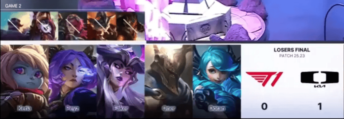 T1选用:Doran格温、Oner潘森、Faker辛德拉、Peyz芸阿娜、Keria波比