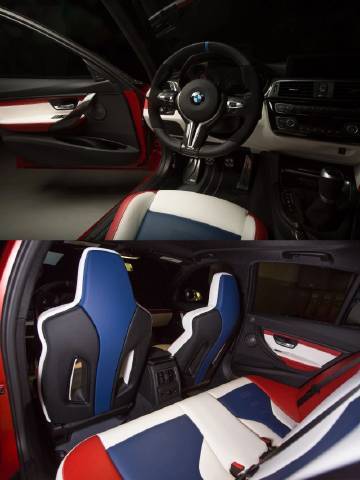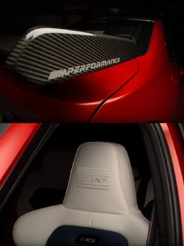 F80的宝马M3!汽车 2017年发布的宝马M3 30周年美国版,为了纪念宝马M3在美国上市30周年,其设计灵感来自BMW M三原色和美国国旗图案。
