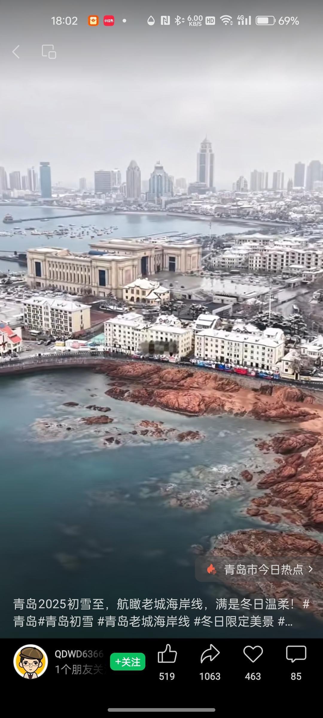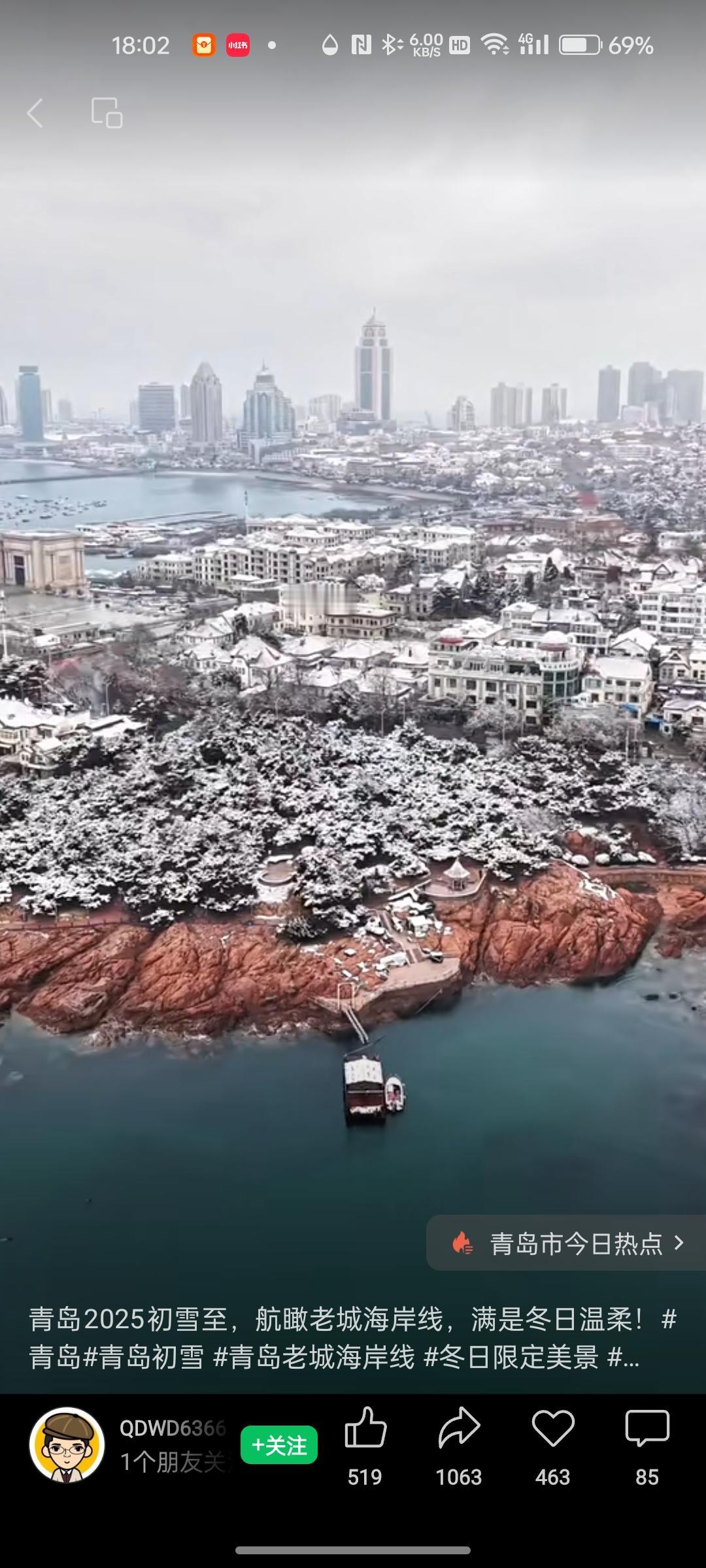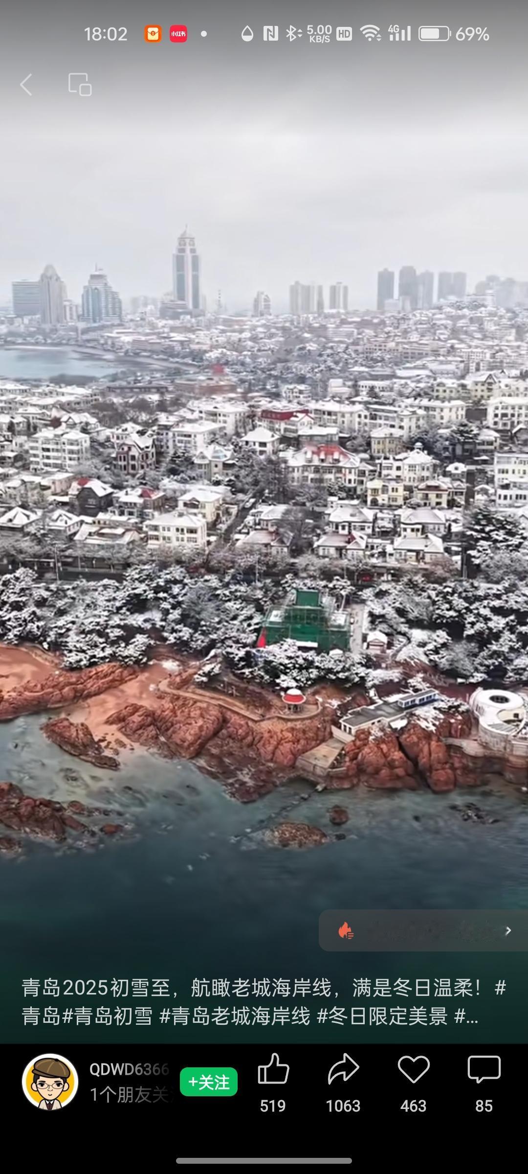 青岛下雪一觉醒来,白雪皑皑~青岛