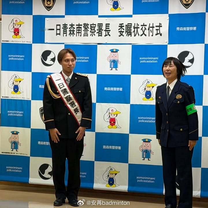 奈良冈功大ig:前些天,我有幸在本地的青森南警察署,担任了一日署长!体验了平日里无法接触到的工作,真的受益匪浅。非常感谢大家😊羽毛球