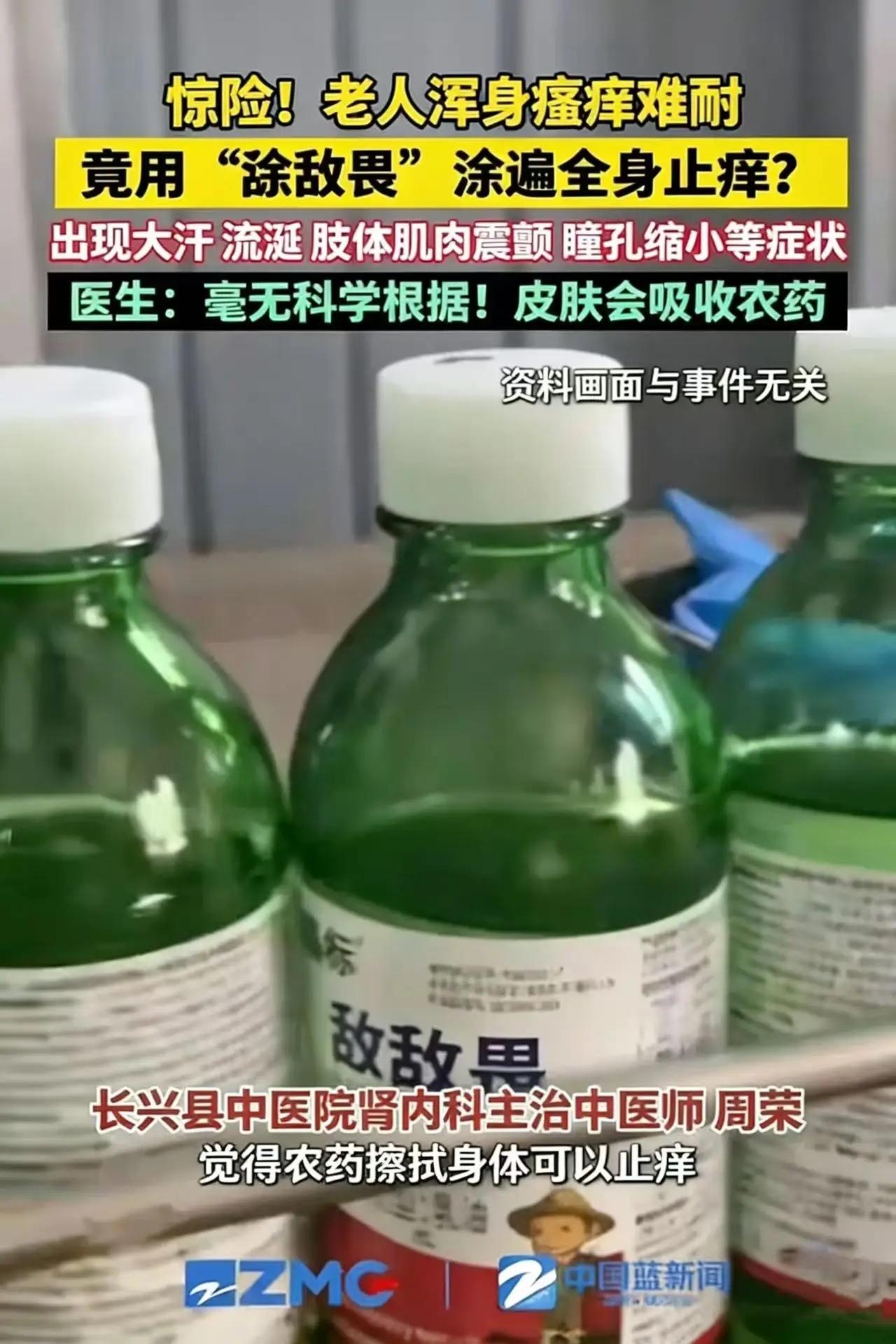 “悲剧还是发生了!”12月12日,浙江湖州,一老人因浑身瘙痒,感觉浑身不舒服,看见桌上的农药,想起之前听说过农药涂在皮肤上可以止痒,于是立马拿起来擦在皮肤上,没想到不但没有止痒,还出现了一系列中毒症状,情况十分危急。 老人身上痒得难受,看到角落里的农药瓶,脑子里突然冒出个“偏方法子”,依稀记得谁提过“以毒攻毒”能止痒。他没多想,拧开瓶盖就把药水往发痒的皮肤上抹。 这哪里是解药,农药是用来杀灭农业害虫的化学制剂,毒性很强的。它不仅能通过呼吸、误食让人中毒,同样可以通过皮肤接触吸收,进入血液。老人抹上去没多久,皮肤不仅没好转,反而开始出现更严重的问题。 恶心、头晕、震颤、瞳孔缩小等中毒的症状很快就上来了。家人发现不对劲,看到他扔在一旁的农药瓶,吓得魂飞魄散,赶紧拨打了急救电话。老人被紧急送医时,情况已经相当危险。 农药止痒,这完全是没有科学依据的危险偏方。皮肤瘙痒的原因很多,可能是过敏、皮炎、湿疹,或者仅仅是秋冬季节皮肤干燥。正确的做法是看医生,查明原因,对症下药。用刺激性极强的化学毒剂去涂抹,无异于火上浇油,严重损伤皮肤屏障,还会引发全身性中毒,损伤肝脏、神经系统,甚至危及生命。 这个悲剧背后,是老人对基本科学常识的缺乏,也反映出一些健康谣言的可怕流传。很多我们听来的“土方子”“老经验”,不仅没用,还暗藏杀机。家里的农药、化学制剂,一定要放在老人和孩子绝对接触不到的地方。 关心家里老人的健康,不仅要关注他们吃穿,还要留意他们从各种渠道听来的“知识”。多提醒,多沟通,告诉他们身体不舒服,第一个要找的是医生,而不是那些来历不明的“偏方”。健康的事,真不能自己想当然。 各位读者你们怎么看?欢迎在评论区讨论。
