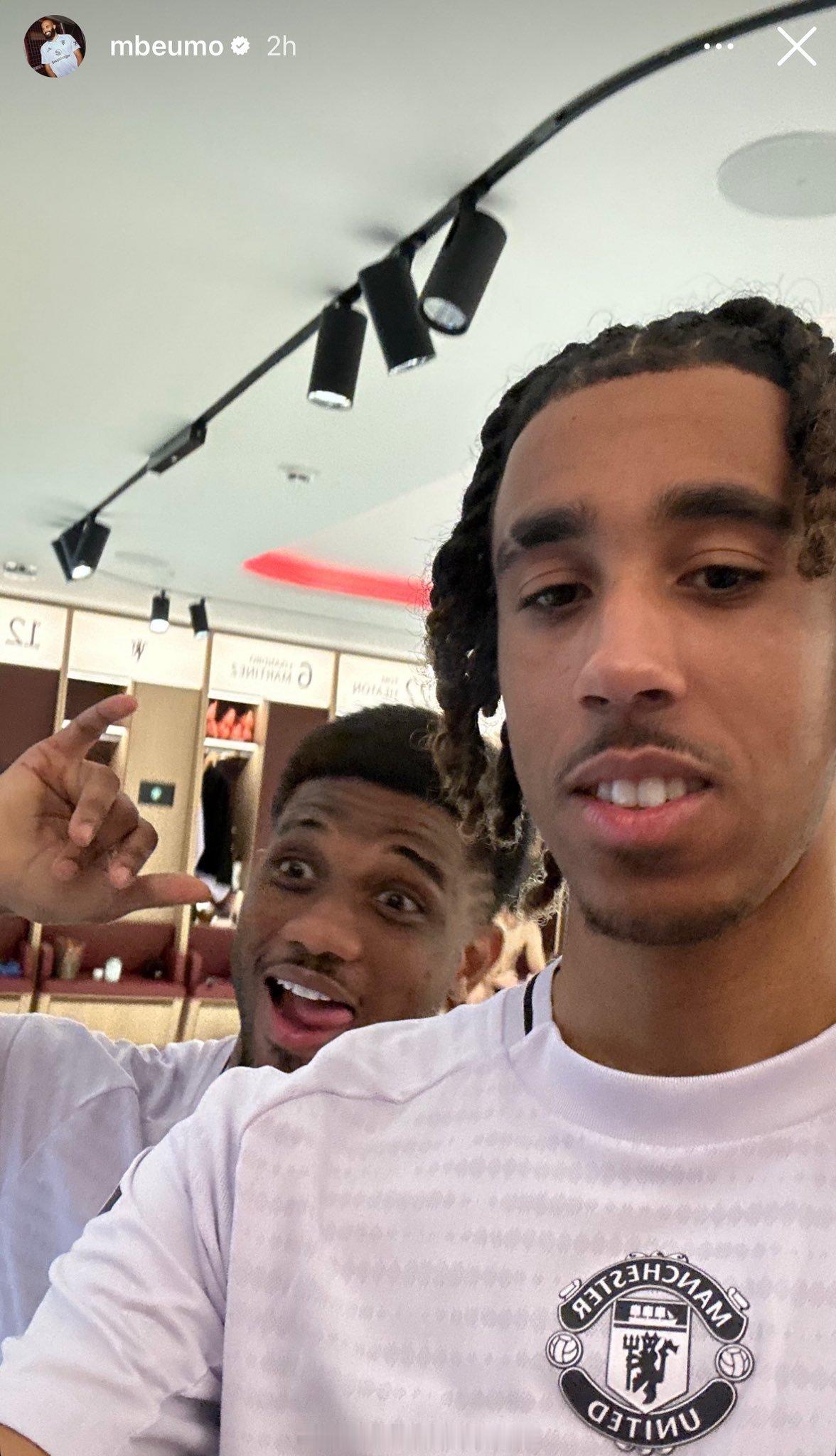 阿玛德和约罗在更衣室“偷”了姆贝乌默的手机并留下搞怪自拍姆贝乌默:能怎么着,宠着