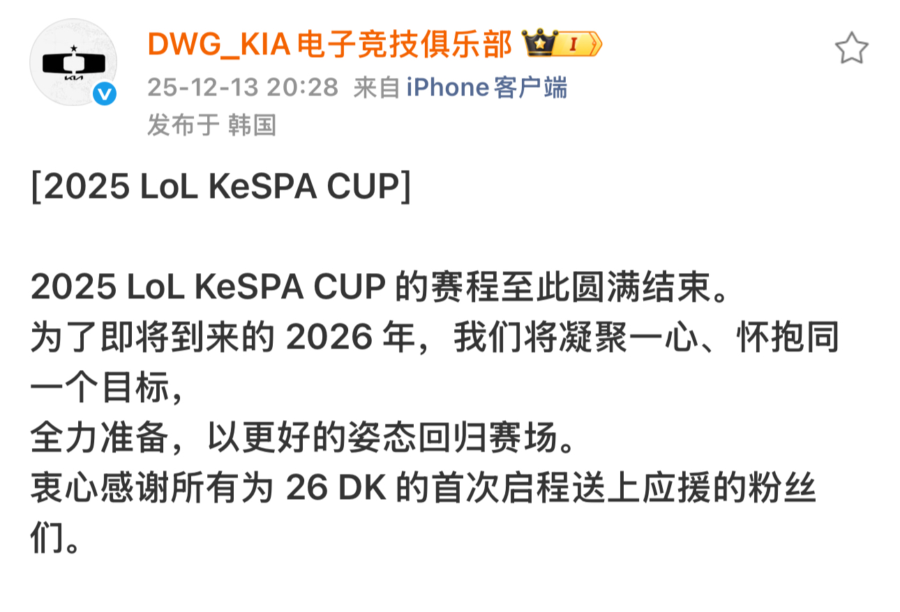 虎扑12月13日讯惨遭T1让二追三后DK官方发文: