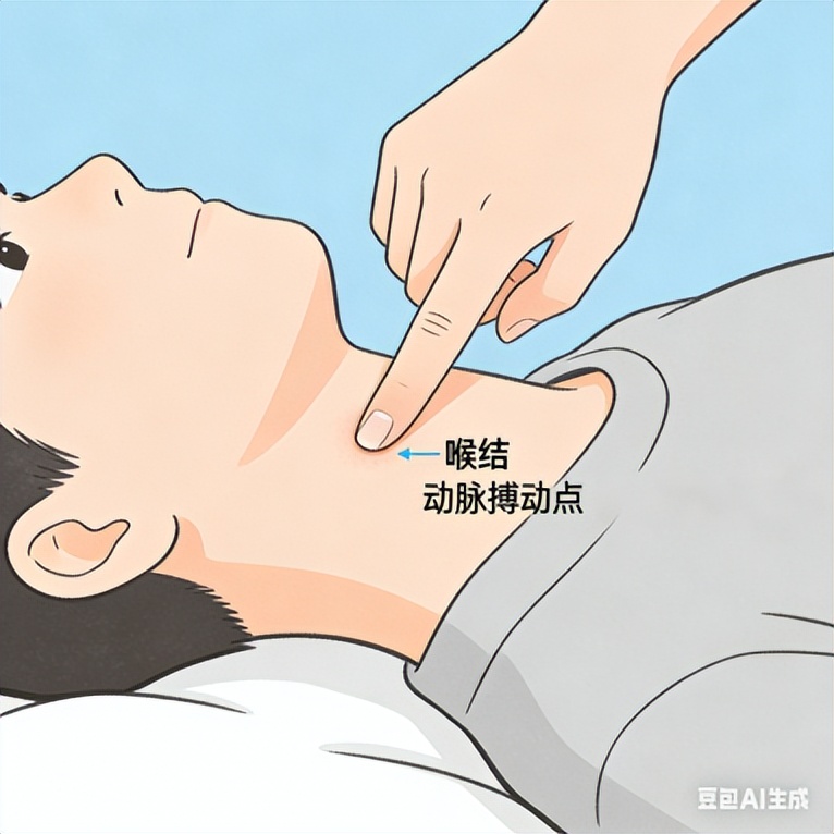 按压颈动脉窦:头偏向一侧,用手指轻按脖子侧面(喉结旁2厘米处)的动脉搏动点,每次按5-10秒(注意:只按一侧,有高血压、颈椎病的人慎用)。