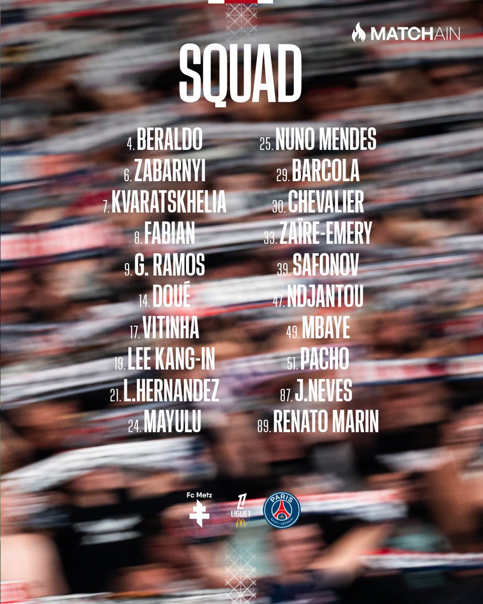 虎扑12月13日讯北京时间明天凌晨,法甲联赛第16轮,巴黎圣日耳曼将做客挑战梅斯。赛前,巴黎圣日耳曼公布了本场比赛的大名单。