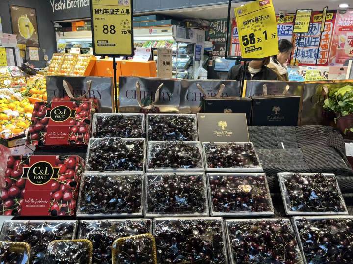 随着海运车厘子的抵达,杭州市场上的车厘子降价了吗?