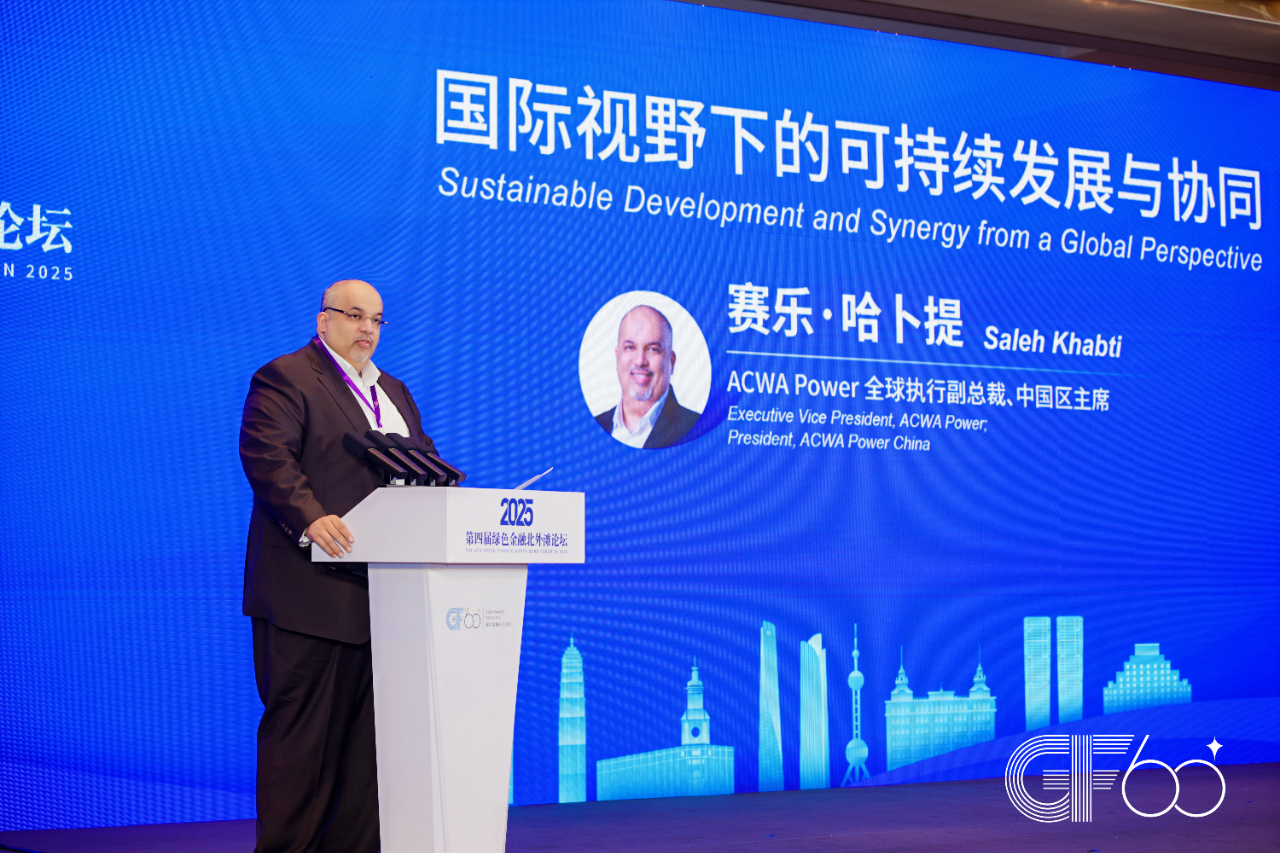 12月11日,由绿色金融60人论坛(GF60)主办、上海金司南金融研究院承办、中欧国际工商学院协办,以“探索绿色可持续发展新机遇,共筑国际绿色金融枢纽新篇章”为主题的2025第四届绿色金融北外滩论坛在上海虹口成功举办。ACWAPower全球执行副总裁、中国区主席赛乐·哈布提以“赋能增长:绿色发展的伙伴蓝图”为题发表主旨演讲。