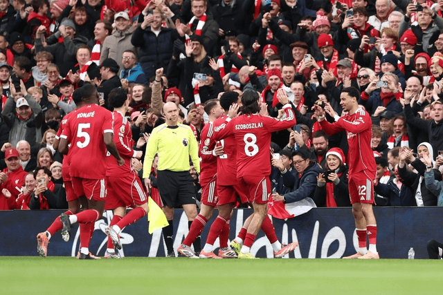 虎扑12月13日讯英超联赛,利物浦对阵布莱顿。开场第46秒,埃基蒂克为利物浦进球。