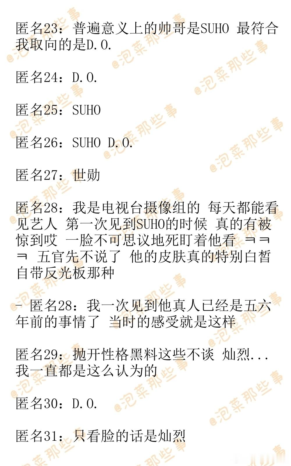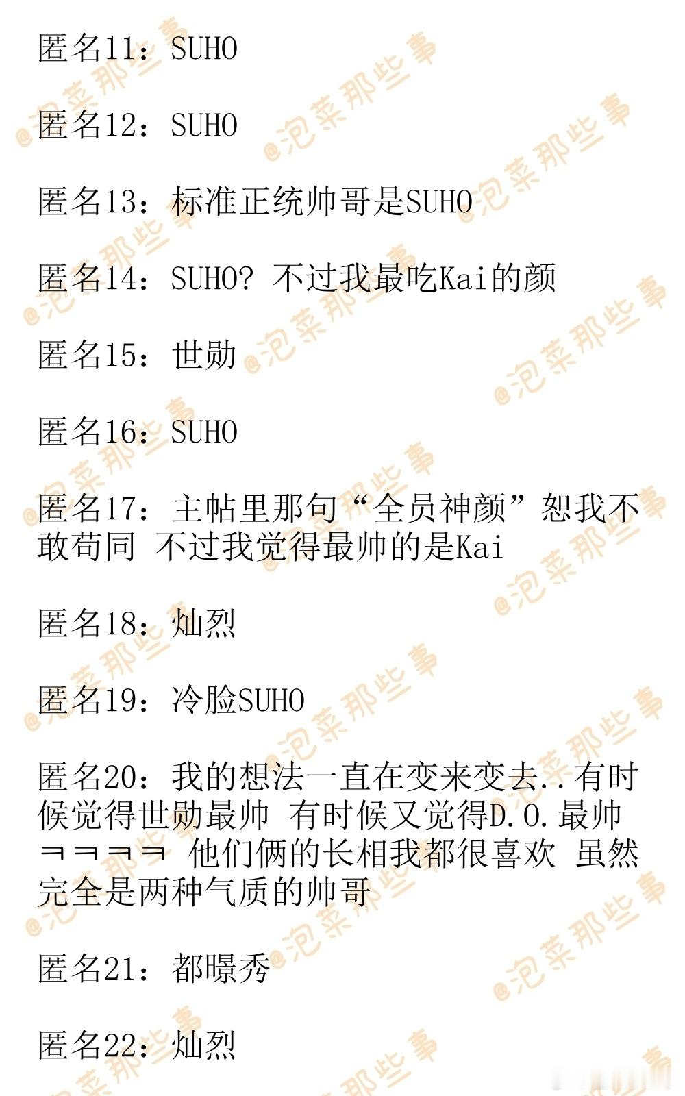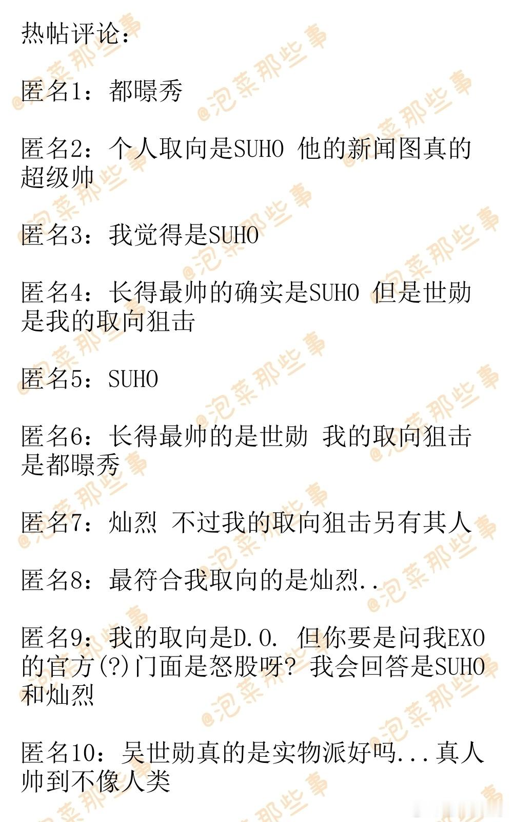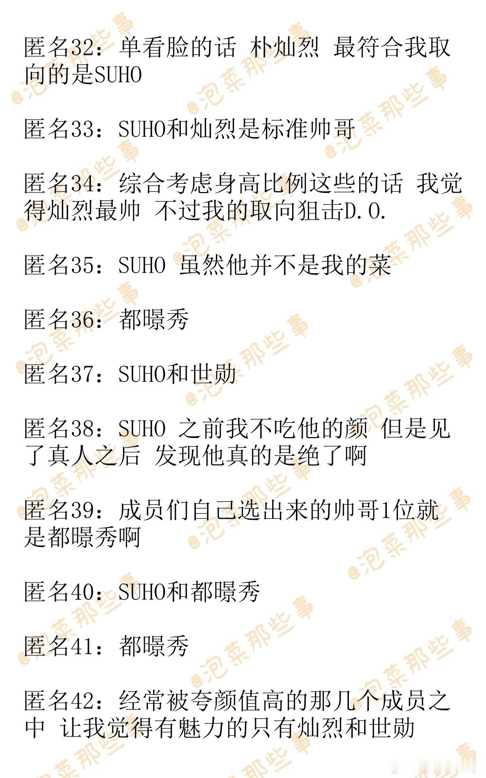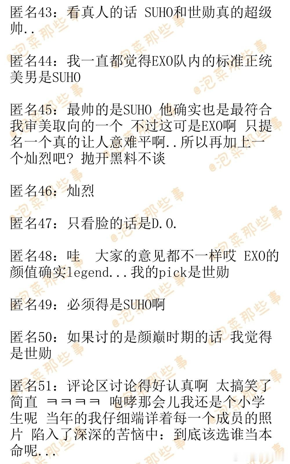 🔥韩网热帖评论翻译🔥你觉得EXO队内长得最帅的是谁啊?韩网原帖帖主发问:你觉得EXO队内长得最帅的是谁啊? 我可不是要比较拉踩成员们的颜值哦 反正EXO全员神颜 我问这个问题 只是很好奇大家的审美取向而已cr.instiz