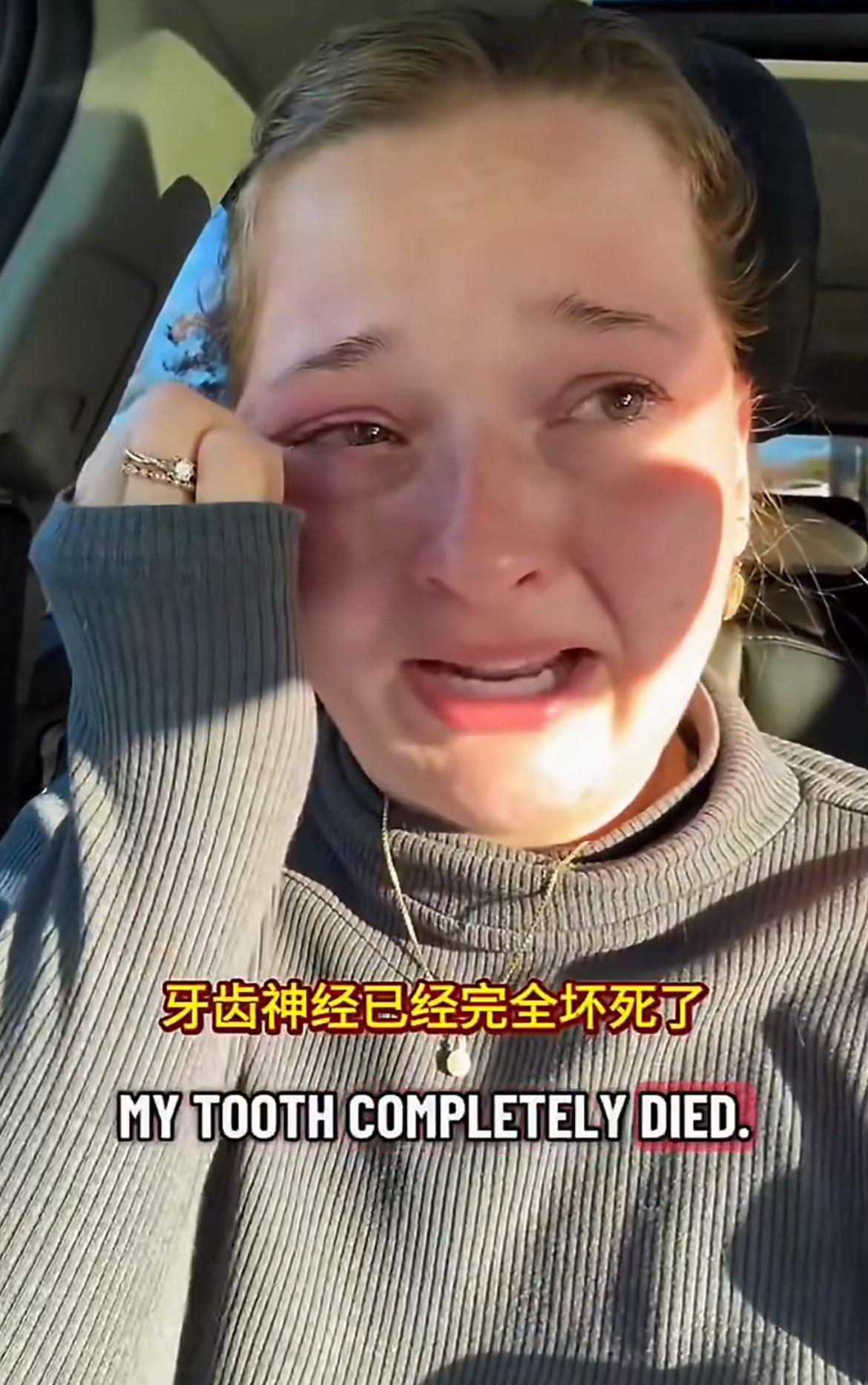 美国女子崩溃大哭,不知道还以为得了什么大病,原来是蛀牙了找不到医生给她治疗,很多诊所都需要自费,然而她负担不起,找了一个半月医生后,终于预约到了一个新牙医,然而由于拖得时间太久了,导致她牙神经坏死了,要做根管治疗,意味着又要支付一大笔费用才能治 这让她感觉特别不公平,努力工作支付了高额医疗保险,到最后连治疗一颗牙齿的自由都没有