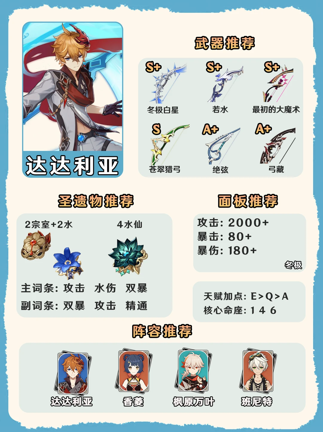 原神4.8版本水系角色培养攻略一图毕业!