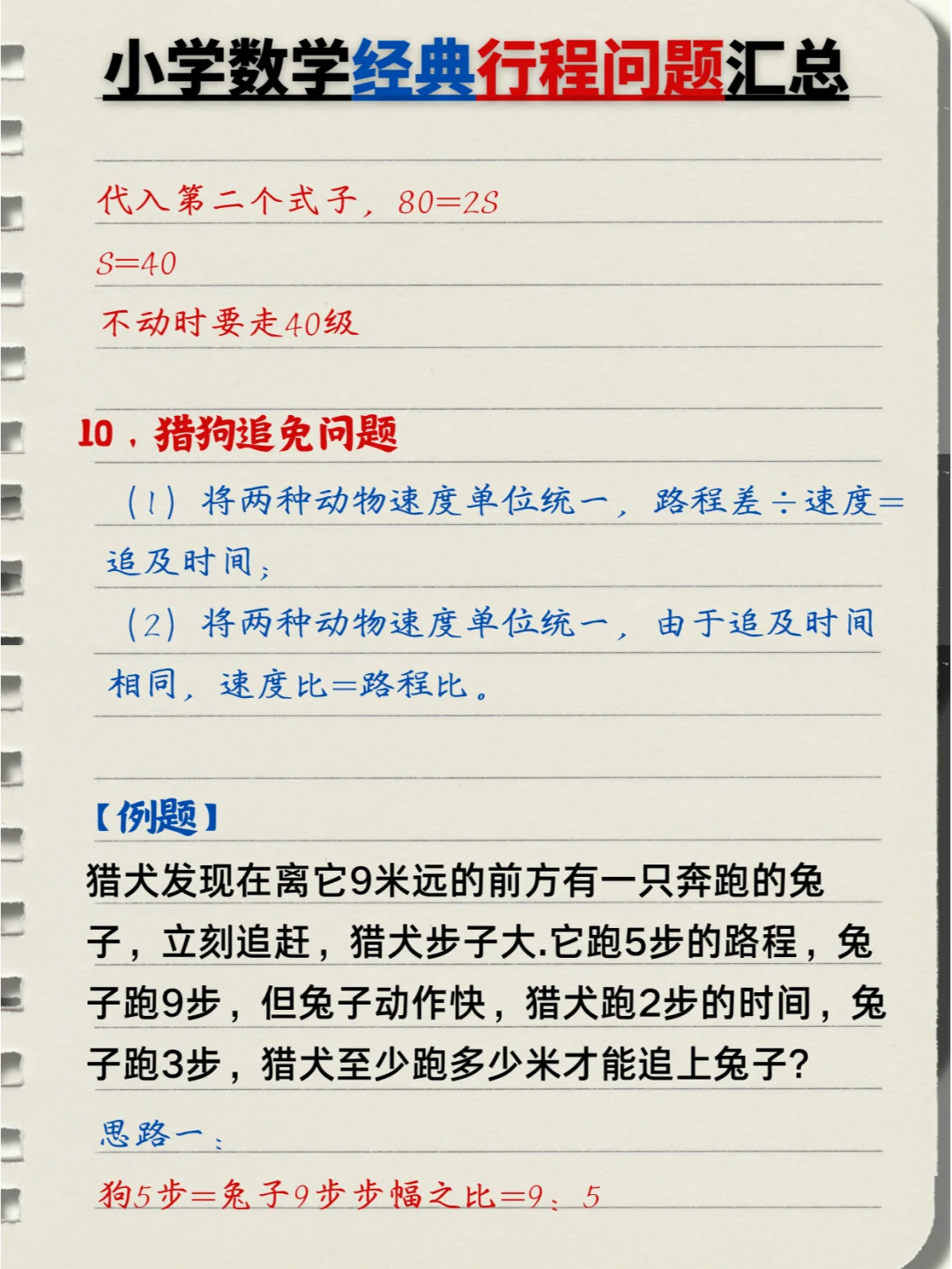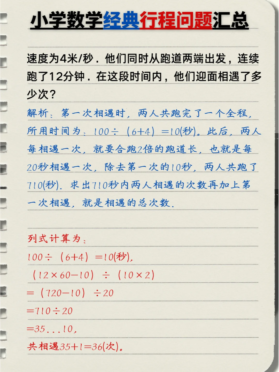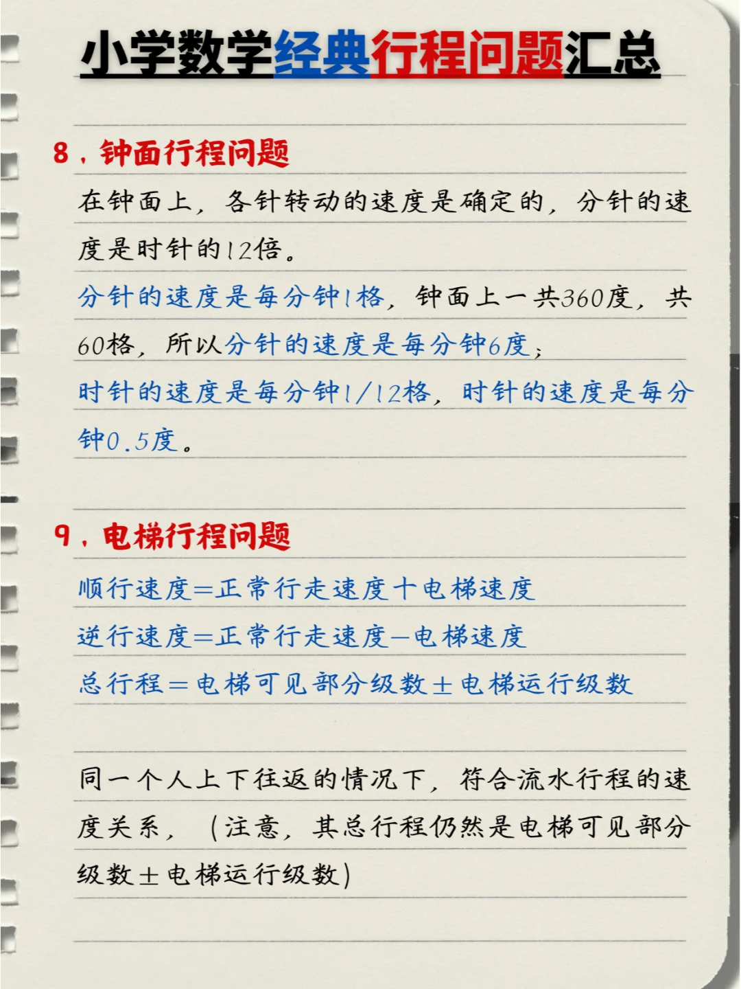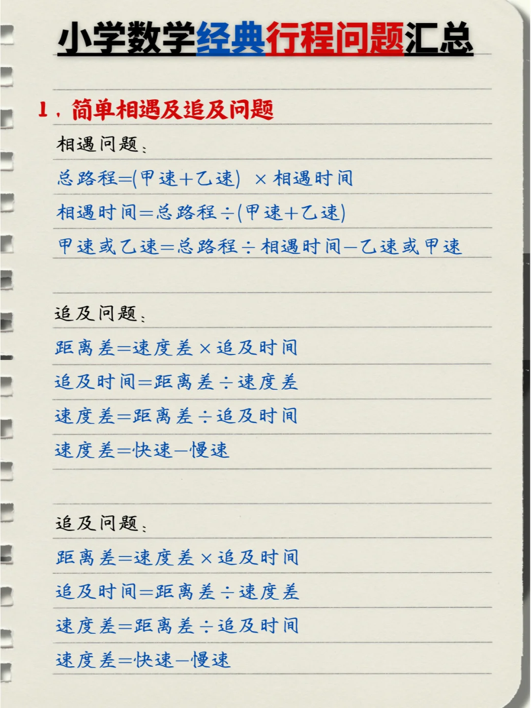 🔥小学数学常考10类经典行程问题-解题公式汇总,背熟掌握好这些,升学考试不拿高分都难❗ 1️⃣简单相遇及追及问题 2️⃣流水行船问题 3️⃣环形跑道问题 4️⃣多人相遇追及问题 5️⃣多次相遇追及问题 6️⃣火车过桥问题 7️⃣火车追及问题 8️⃣钟面行程问题 9️⃣电梯行程问题 🔟猎狗追免问题