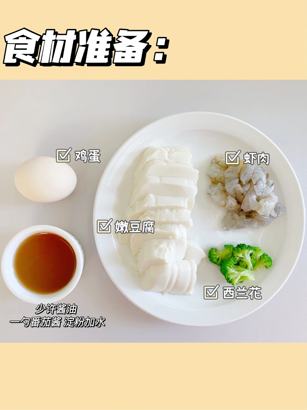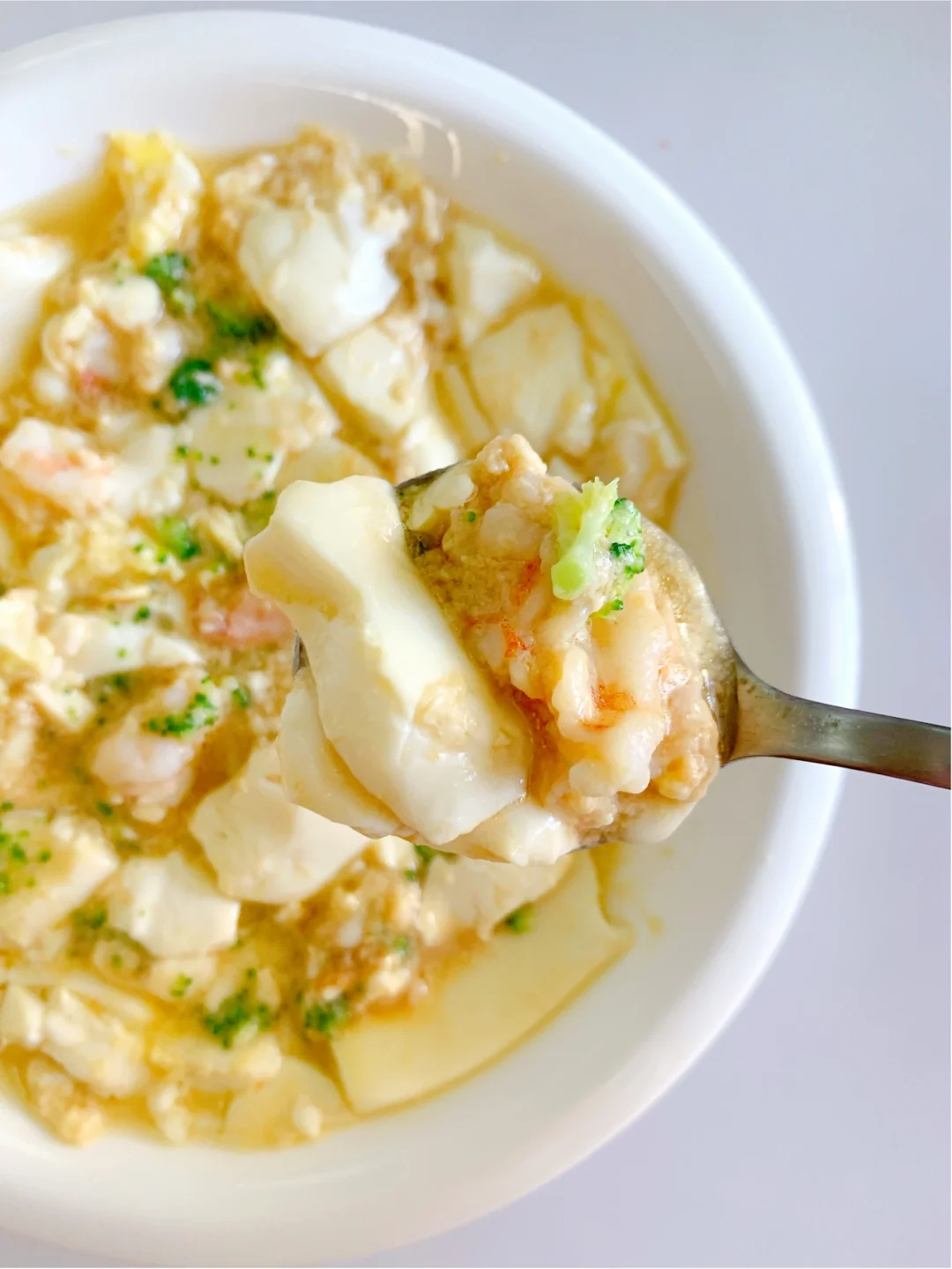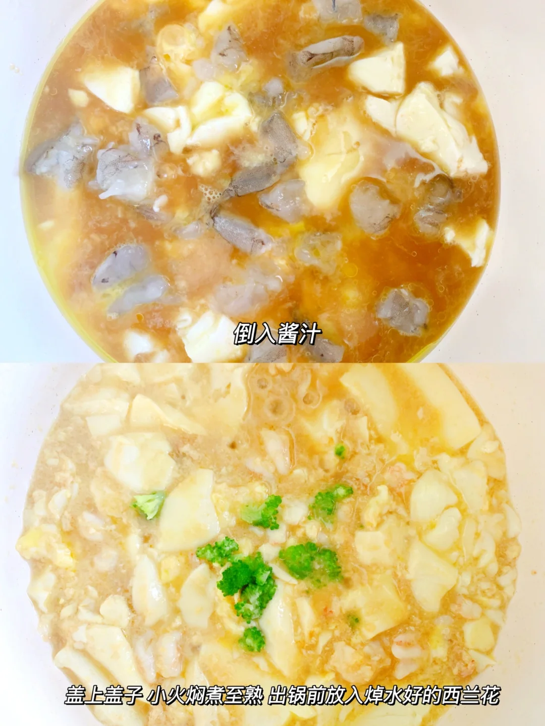 [害羞R]今天分享一道可乐很喜欢吃的下饭菜,虾仁加上豆腐和鸡蛋,鲜到掉眉✅ 做法也是超简单,麻麻们赶紧安排起来吧 ——— 🌟食材 嫩豆腐 虾仁 鸡蛋 西兰花 酱汁(一勺宝宝酱油 一勺番茄酱 5克淀粉加上水搅拌均匀) . 🌟做法 1⃣️虾仁切小,用姜片腌制,鸡蛋打散 2⃣️锅里倒入油,放入豆腐,倒入鸡蛋液,再放上虾仁,小火煮至定型 3⃣️倒入酱汁,盖上盖子煮至收汁,倒入焯水好的西兰花碎