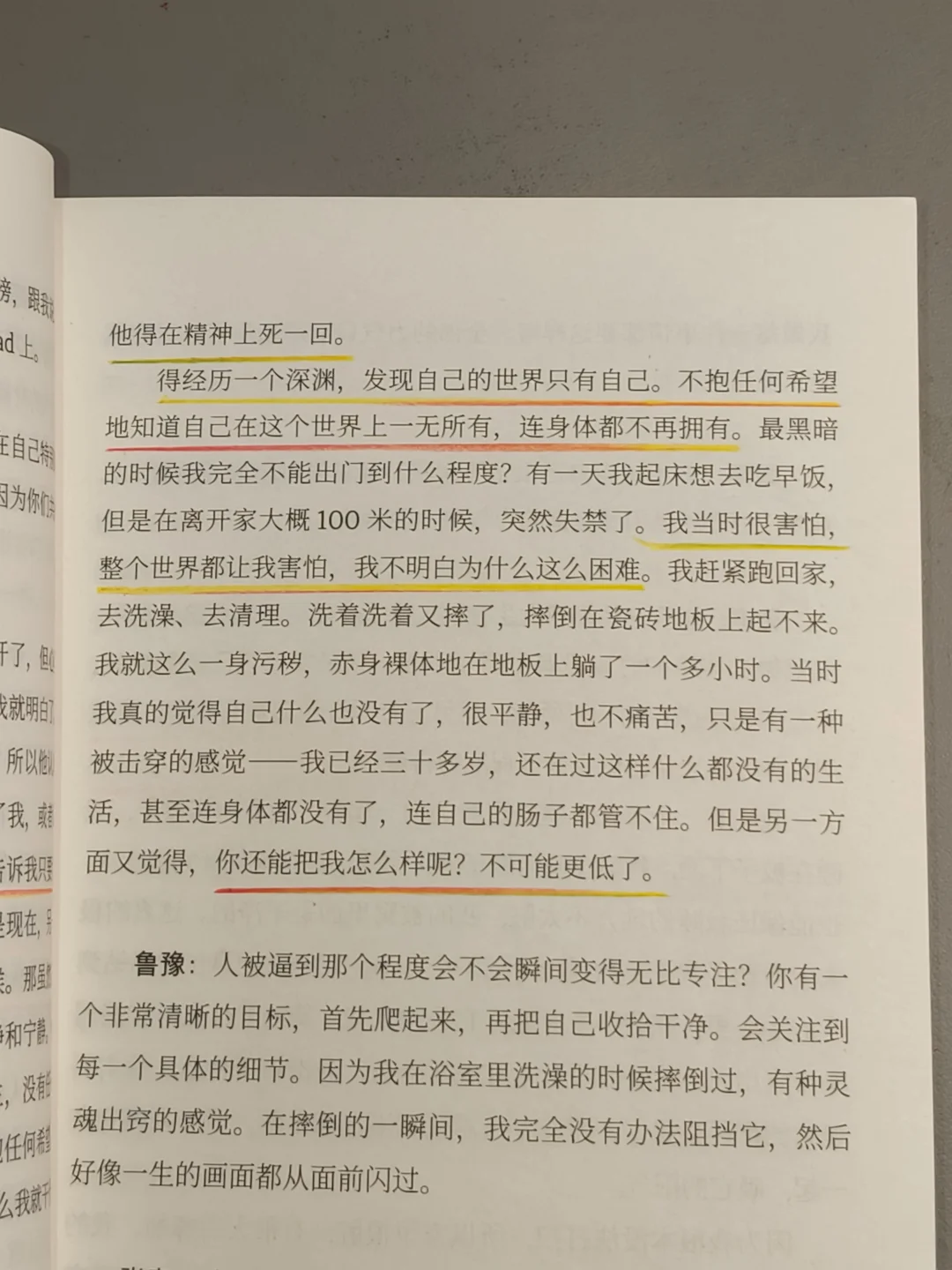 “一个人要获得自由,或者获得真实,他得在精神上死一回。得经历一个深渊,发现自己得世界只有自己。不抱任何希望地知道自己在这个世界上一无所有。”