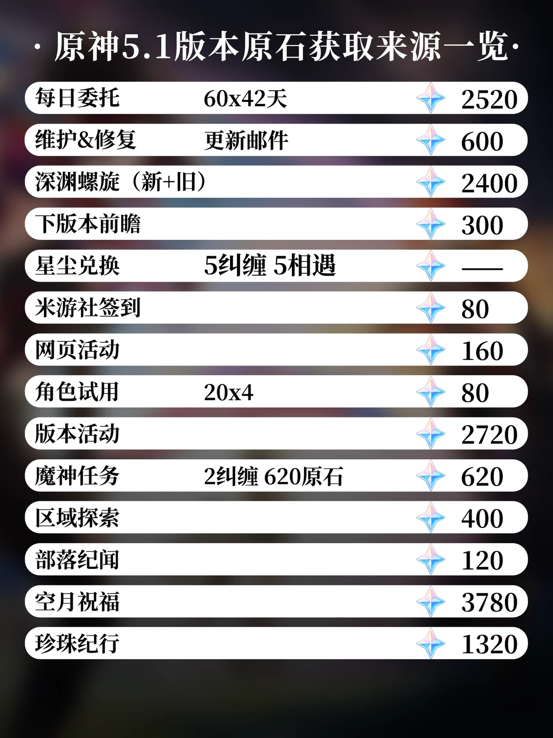 5.1版本原石统计汇总👀你能拿多少原石